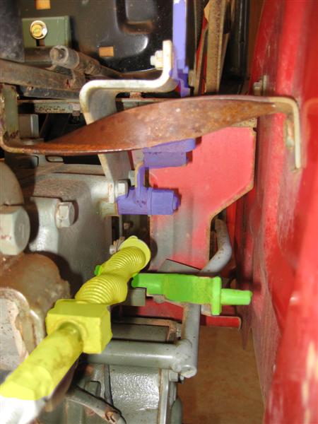 I can't seem to figure out what's wrong here. The main hydraulic lift control lever (shown in purple) will stop working after a few times, and then I have to reach down and pick up on the lower control arm (shown in green). If I pick the green one up all the way, then the top arm will work a few more times...and on and on.