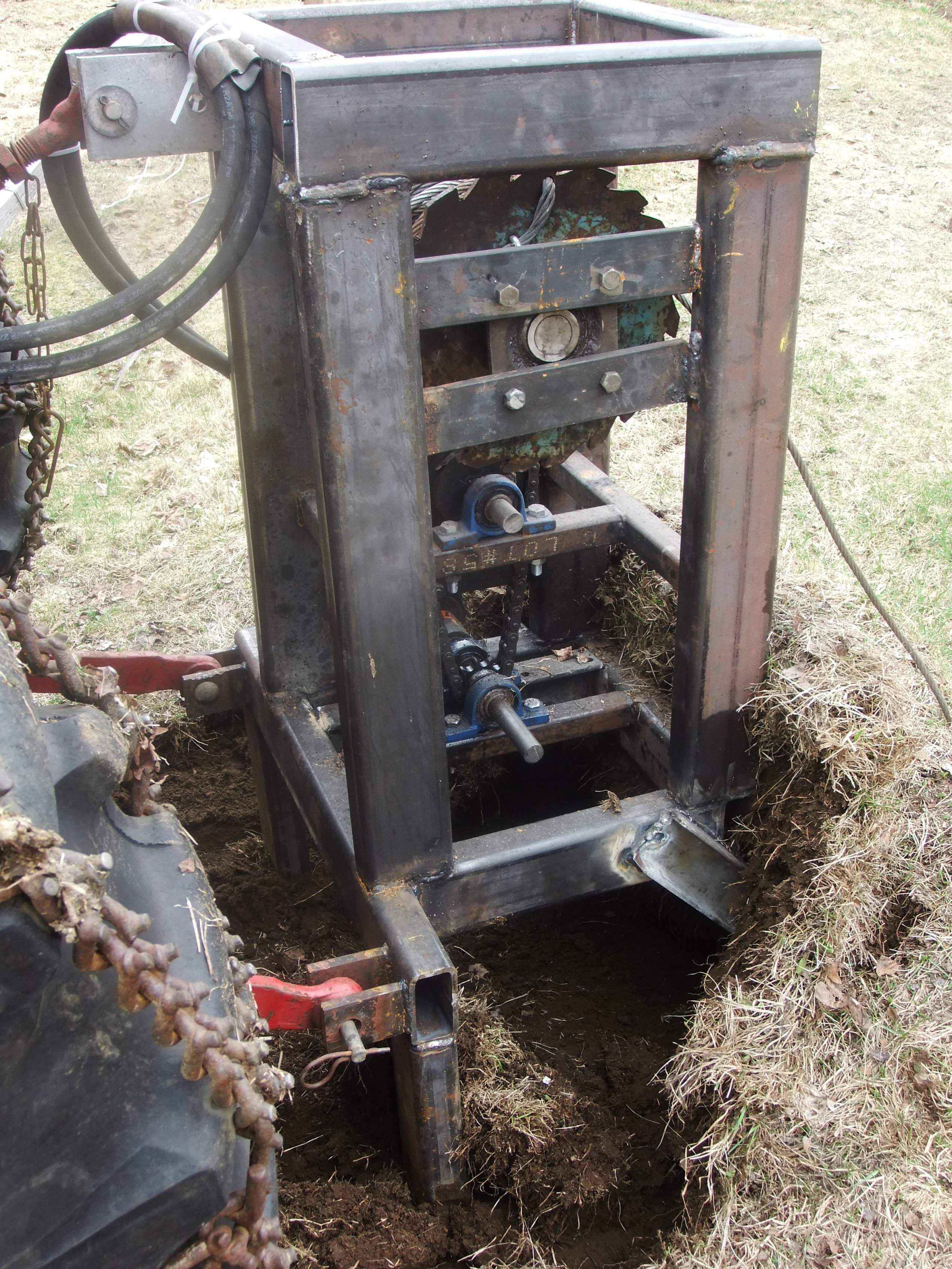 today i welded a removable fence to protect myself in case somethings go wrong , i tried my blade, it slices the grass and goes deep in soil about 10 inch, when i pulled a 40 feet tree from a 30 degrees down slope, speed is about 20feet/min at idle speed, 30feet/min at 25 percent acceleration, one thing i am sure about is its very powerful winch, the hydraulic motor is a parker 110A series 7.1cinch/rev. low speed high torque, will post a video later, now i need to install a roller winch front of the drum to avoid scraping my cable on sharp drum sides when the pull direction is not straight the drum, i apologize for my poor English it's not my usual language