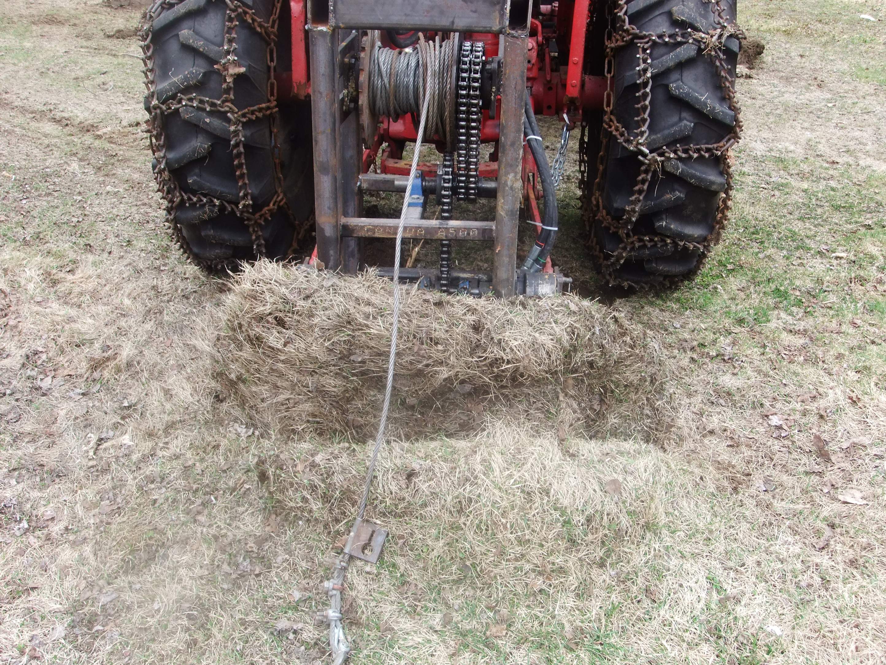 That seems like a problem. And remember it is also really a bit slow. Even if putting a doubling chain system on the front of it, when running the tractor at 2/3 throttle, the dragging speed is less than half a foot per second (29 feet a minute).