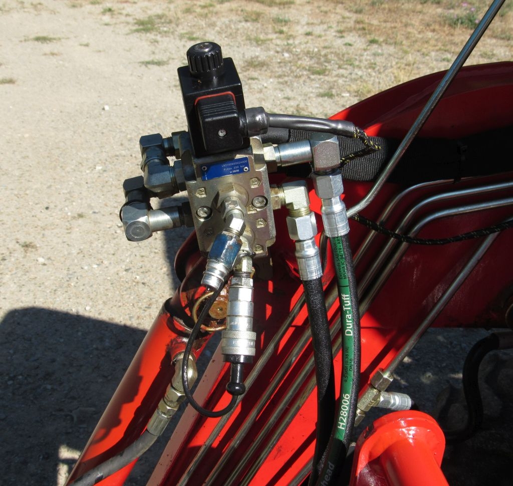 The high pressure one supplies 2886 psi to the hydraulic power cylinder that has two outputs connectors that go into the lift arm case of the 3 point hitch. From the case a nozzle