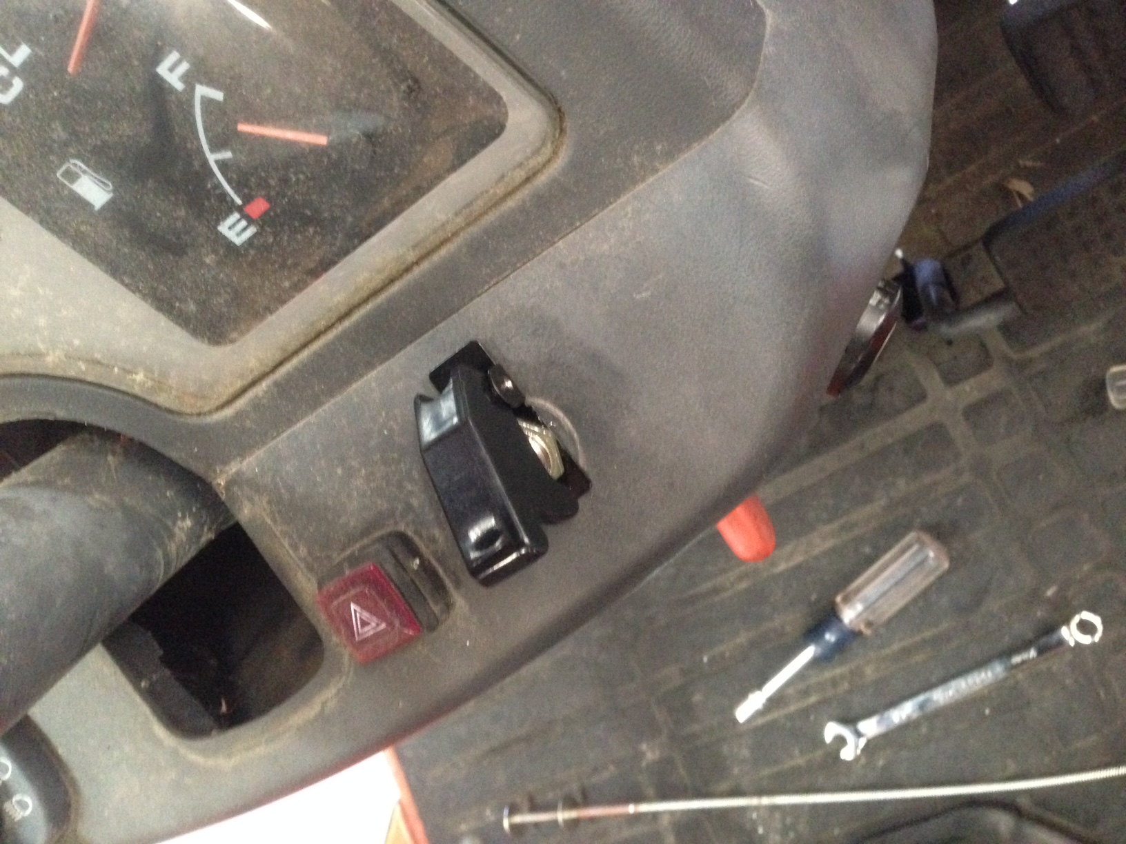 Photo 5/6 - Switch is SPST with a snap cover. In the up (on) position power goes to the solenoid and fluid flows to the QA cylinders. In the down (off) position no power to solenoid and fluid flows to the grapple cylinders. This setup makes it all but impossible to unintentionally cycle the QA. The switch is in an unused factory mounting hole.