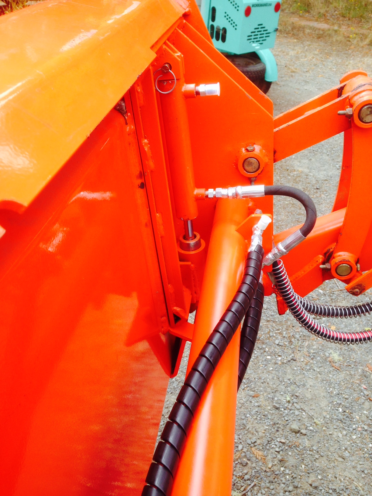 Photo 1: Hose installation on qa. Hose protectors were left over from the hydraulic thumb project.