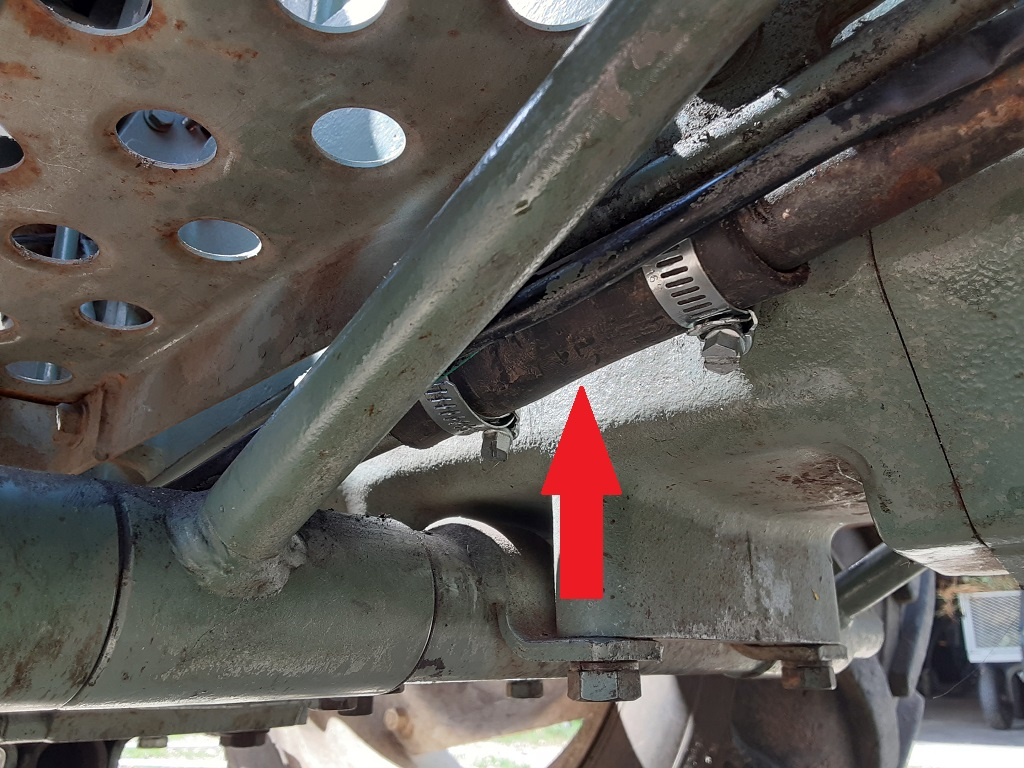 On the throttle side of the YM2610, under the floor foot rest is the suction line for the hydraulics. At the location where the tractor can be split for clutch access, it's joined be a 6-inch hose and 2 clamps. The hose somehow got bunched up and ruptured. A small weeping leak began. When did this all start, I have no idea. I seldom crawl under the machine unless I grease the fittings. I check the fittings come Spring, July 4th weekend and Fall. Upon my recent inspection, the jumper hose was in shreds.