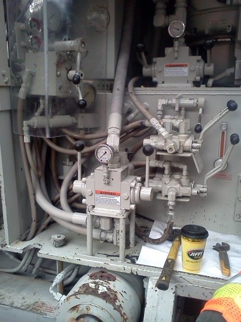 I think you guys that are into hydraulics projects might get a kick out of what I'm working with. The pictures show a pusher that creates 400 tons of jacking force and we are boring a four foot diameter pipe under four hundred feet of interstate highway without stopping a single commuter. I didn't think to take a picture of the generator set that powers the whole operation but it is a Cat 350 KW unit.