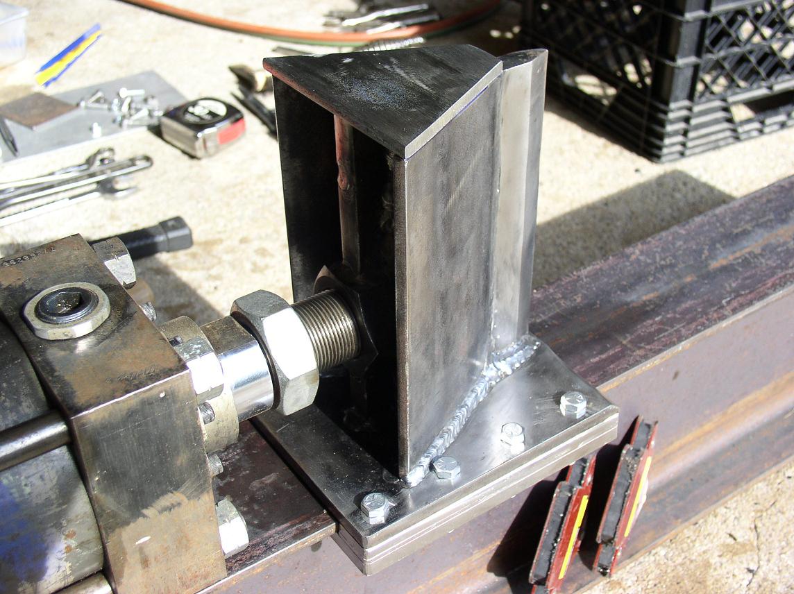 I'm building a tip-up log splitter using a found 4" X 18" cylinder. It has a flat plate mount on the back end that I'm making into a clevis mount. The ram is threaded on the end. Can I mount the ram end directly to the wedge? I was thinking of welding a nut to the back side of the wedge and threading the ram into the nut. Would this put too much stress on the end of the ram?