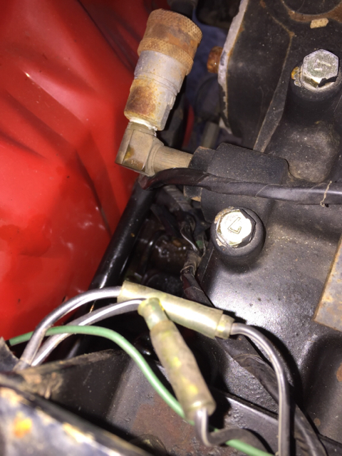 I would be looking at a Hyd. Valve however it's setup. Can't find anything on the valve itself or your setup. Here a pick of my 2000. so it maybe similar. It has the U-Vent and were the spring attaches to the lift handle is were mine raises or lowers the 3-point. If it is similar make sure it's working. Chrome Plunger in for up out for down.