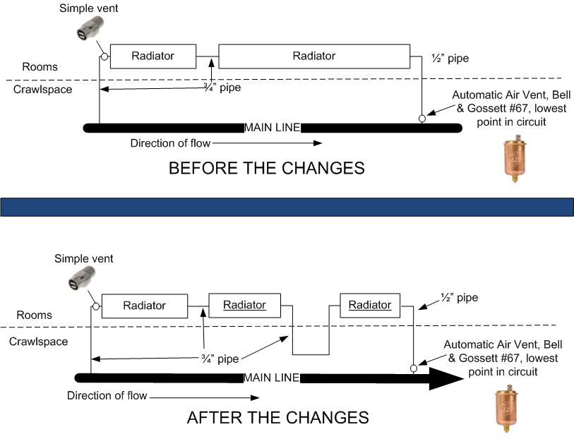 I changed the pic - the pic shows the radiators before and after my changes.