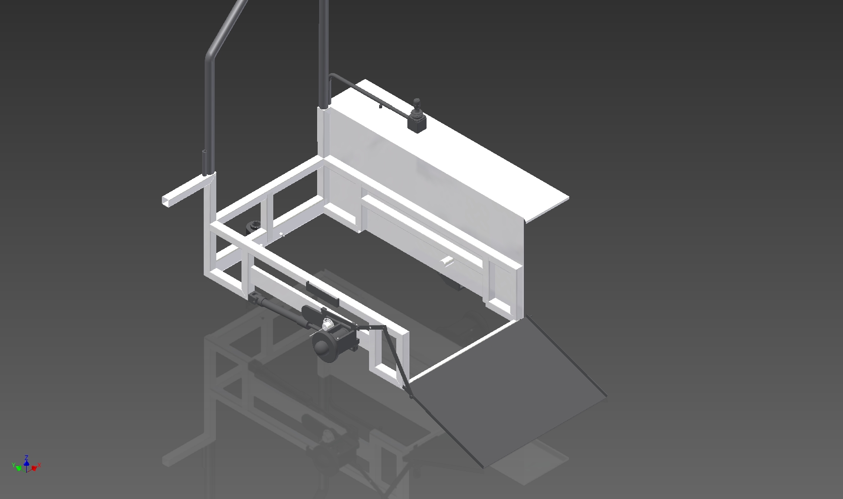 I tried a little bit of a different approach, I wanted to incorporate the fold up ramp into a fully automated system, to reduce the amount hydraulics. The pieces for the foldout ramp are a little crude yet, but now that I've got the ratios right, I will start to incorporate better pieces. Does the system look strong enough, I used a thrust bearing between the mainframe at the wheel motor mount, there is 1.75 inch shaft holding it together. Let me know what you think.