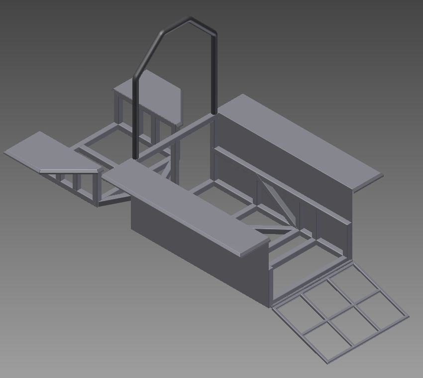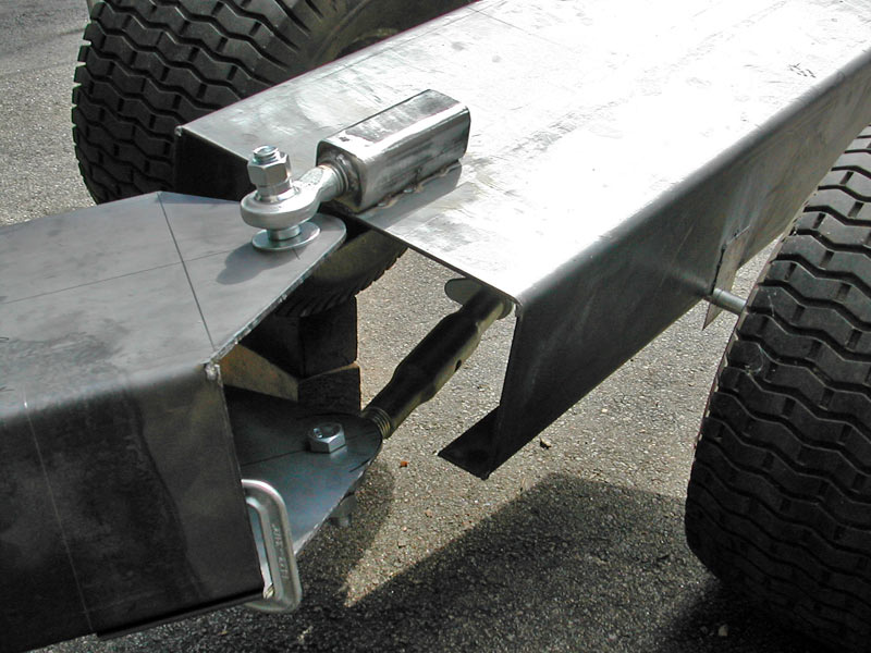 I added a overhang plate, to allow the hitch the only rotate a certain amount. This should prevent it from rotating too much when turning on uneven ground. I plan on using 1.75 inch shaft pins so it should be plenty strong enough. It will take quite a lot of weight, a person in a power wheelchair is anywhere from 500 to 600 pounds. the steel plate is all quarter inch. And all the bearings are very heavy duty and large. The hydraulic ram mounts have to be added yet for the articulating steering. But I have to sort out the hydraulics yet.