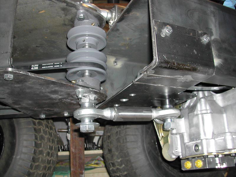 This is what I did to solve the problem. I have hydro axles that are belt driven so the centerline of pivoting had to incorporate a jackshaft for the drive belts. You need to be precise or else the belt length will change to much for a tensioner to compensate for when turning and twisting. My links were made from cat 1 toplinks.