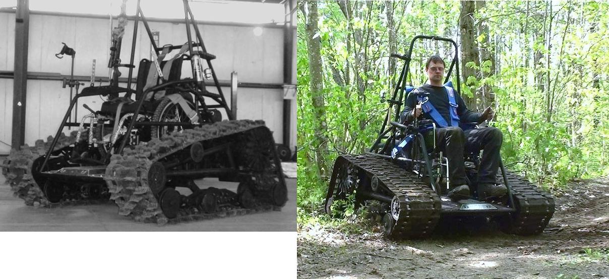 What kind of off road terrain do you think you want to travel on? What will the ballence be between, gravel drives, grass, mudd, water, swamps steep incline/decline going to be? Are you going on a daily adventure? Or can you pretty much guess, what the challenges are going to be, Another thing Iam pluging into the design of the machine is functionality, where are you going to access this (ride) at? Ultimatly an attached garage would be the way to go, so access, manuverably, and, ease of load/unload, are important considerations, Also Simplicity+Durability = Reliability, Weight is also an important consideration, and relitive to mobility, If you are spending most of your time in a chair, I would think that how well this machine rides would be high on the list of design factors, LOTS of ways to design a machine, that will do what you want to do, some right some wrong, If you can shed a little more light on daily use, or terrain challenges, that you want overcome, It would help Designg the drive line, Good Luck Eric
