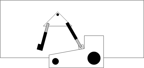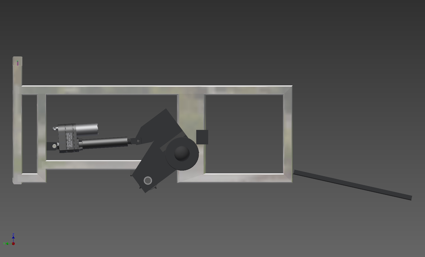 The drawing was incomplete. I was picturing a system where the middle part had rails, etc. build up off of it. The rams could connect from a point on the upper rails to the swing arm.