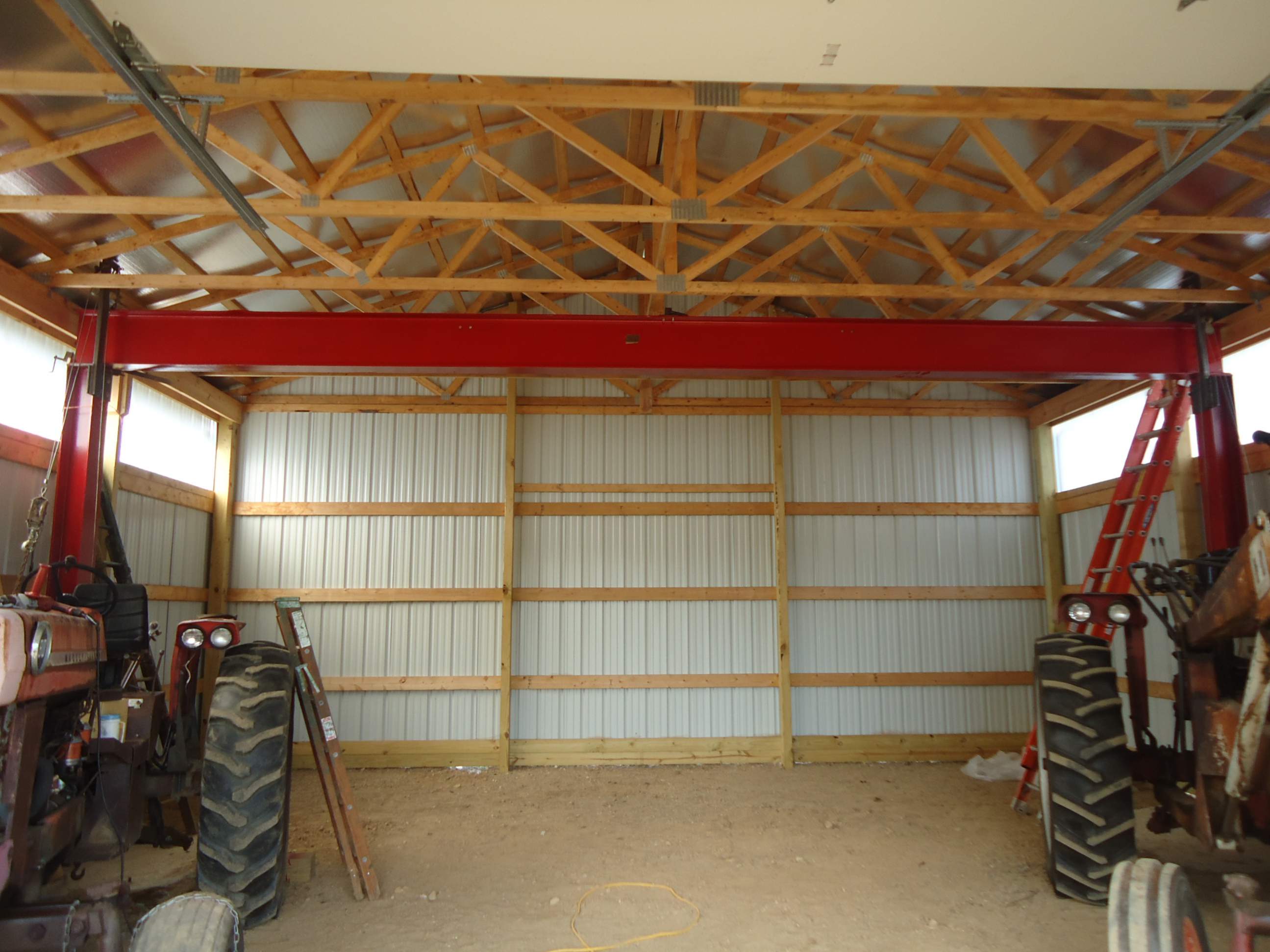 Why did you put a big I-beam up??? I see that you have roof trusses, so I'm thinking you did it so you can hook on to it to lift things, like engines etc. ????? Inquiring minds need to know...LOL !!!!!!!!!!!