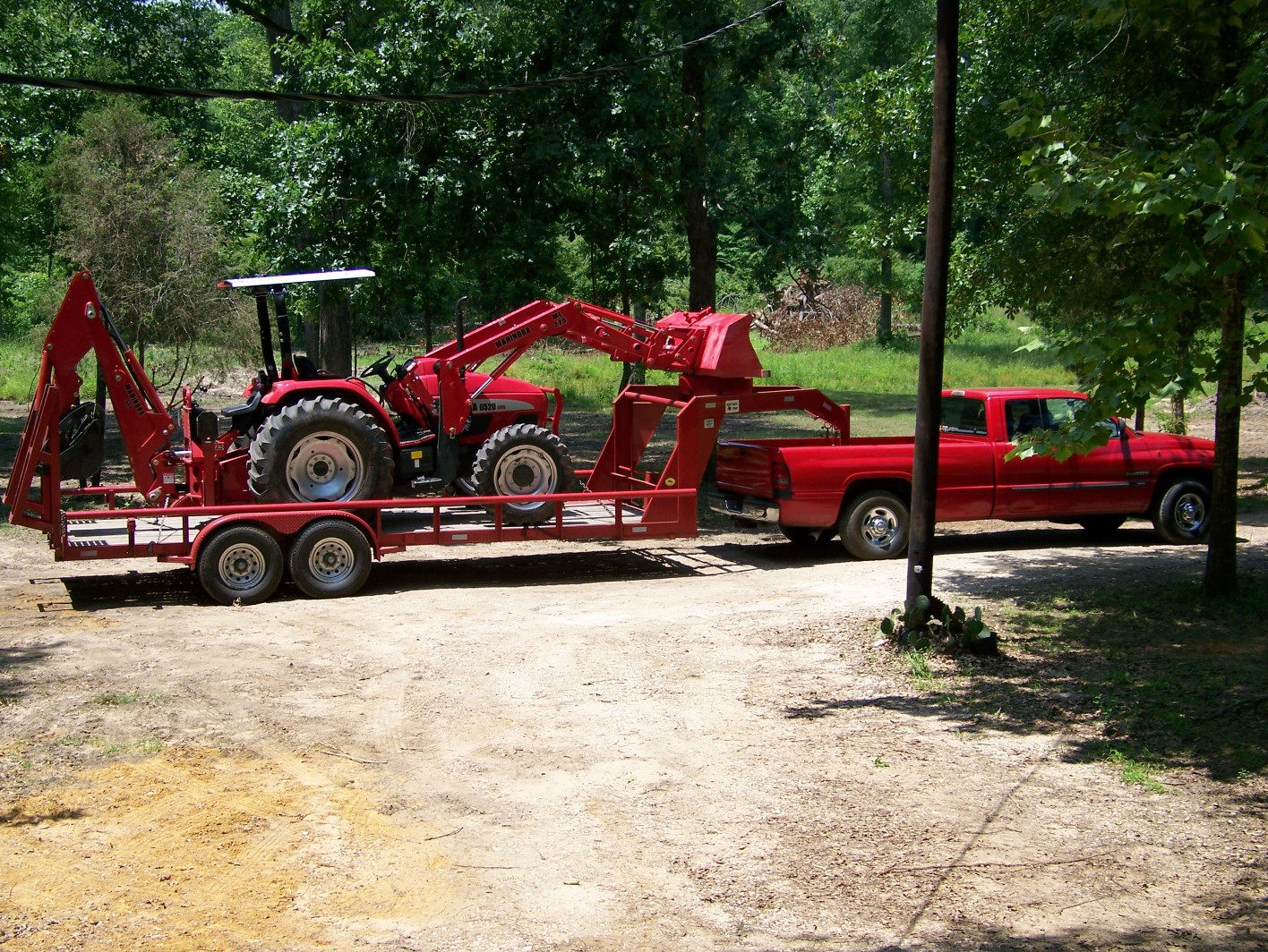 I got a 2000 F250 auto 4door (family of 5 here) with a V10. Prefer diesel since I own and operate big truck and tractor will be diesel, but couldnt pass up deal on pick up. I believe my tow capacity is 13,000lbs, but I will have to look again. I actually plan on this trailer being used for farm a lot. I'm even kicking idea of making a removable livestock cage or everything above the floor like a live stock trailer that can just be removed. I think it will be kewl to have like a all in one trailer. I like that your trailer, tractor, and truck is red, but here I go with the looks again...lol.