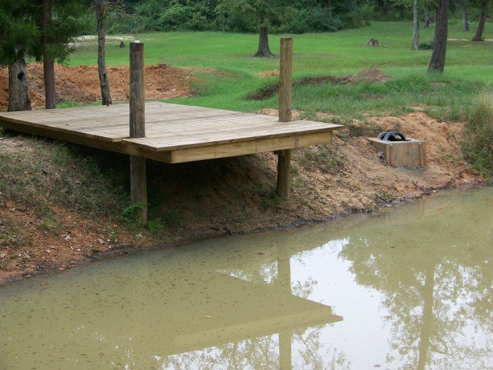 The water is pretty clear, just a shade of all the clay. I haven't added fish yet, will get 1000 fathead minnows on the 19th, followed in 2 months with 4-6 blue catfish fingerlings. I was told by the county natural resource guy to do this to give the fatheads a head start. Also I will sink a fork lift pallet in swallow water for fathead reproduction.