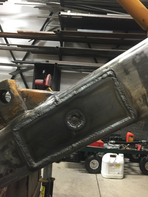 Then the bolts get cut off, welds are finished on that piece, and I weld another piece CNC cut to fit inside the welded area-