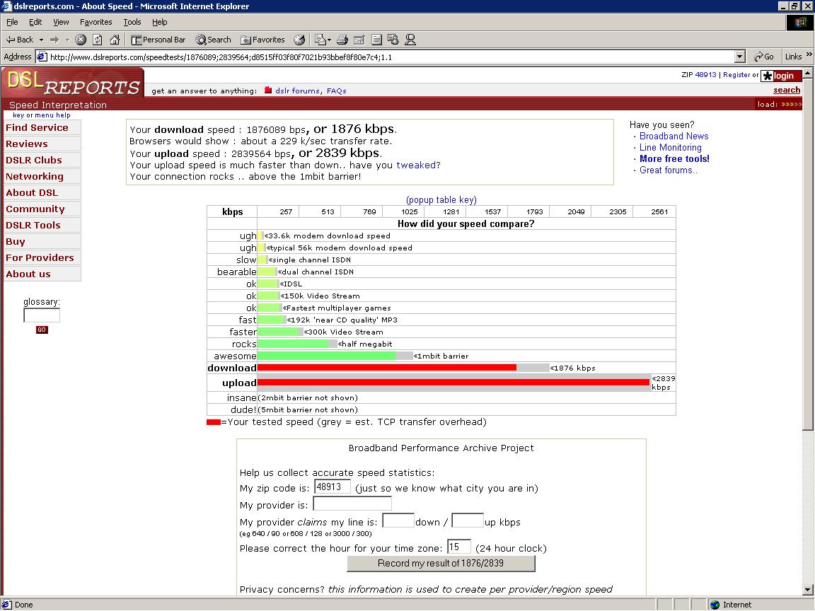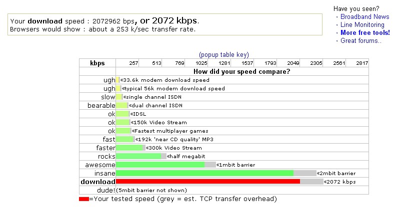 I have attached my test results. I have comcast@home -- which may be shutting down tomorrow. If they do, I am in deep do-do.
