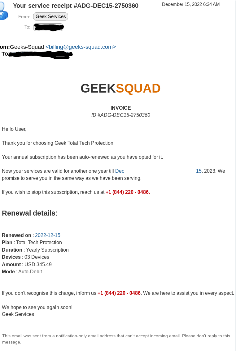 Some poor English in it and the fact that we never had the service let me know it was a scam.