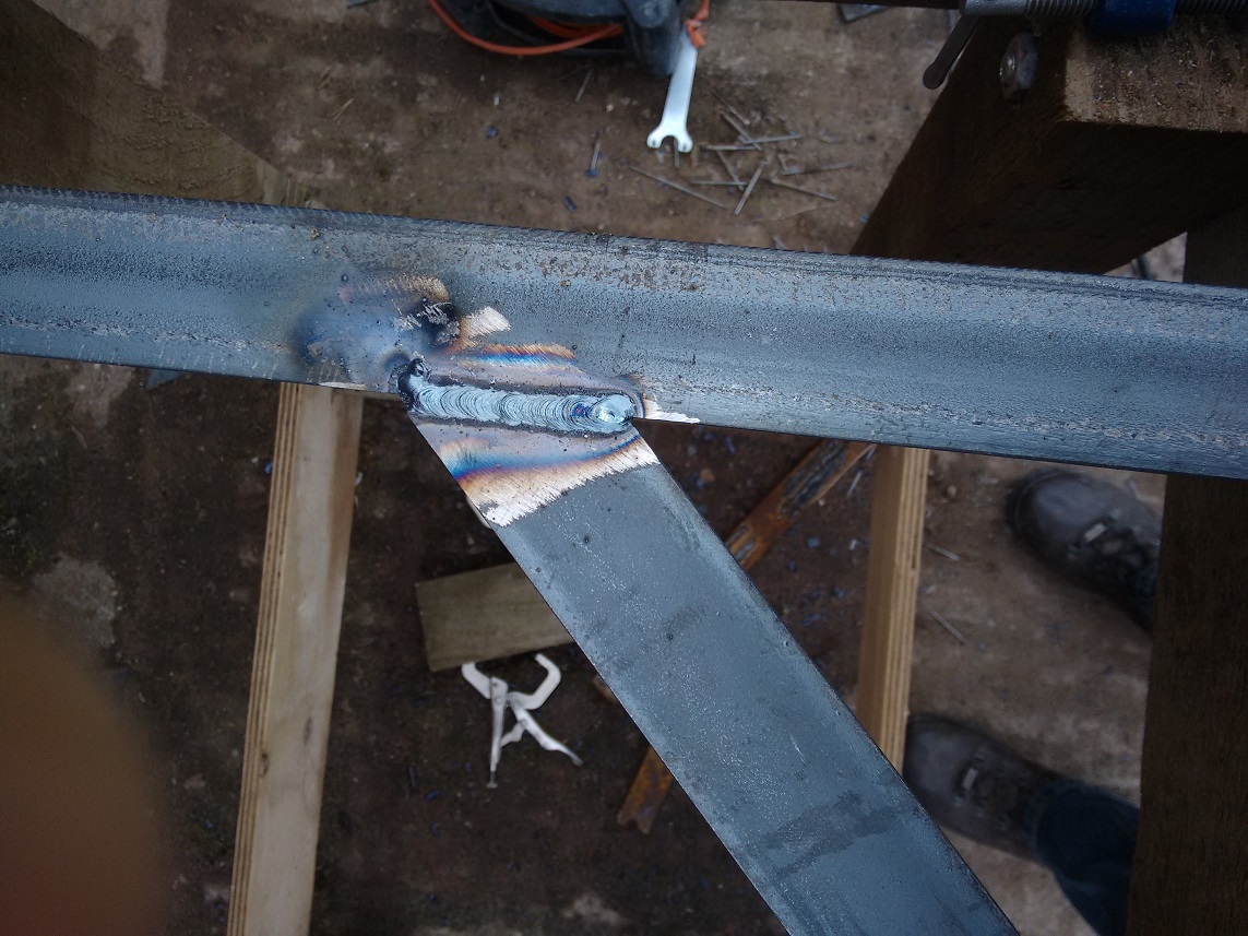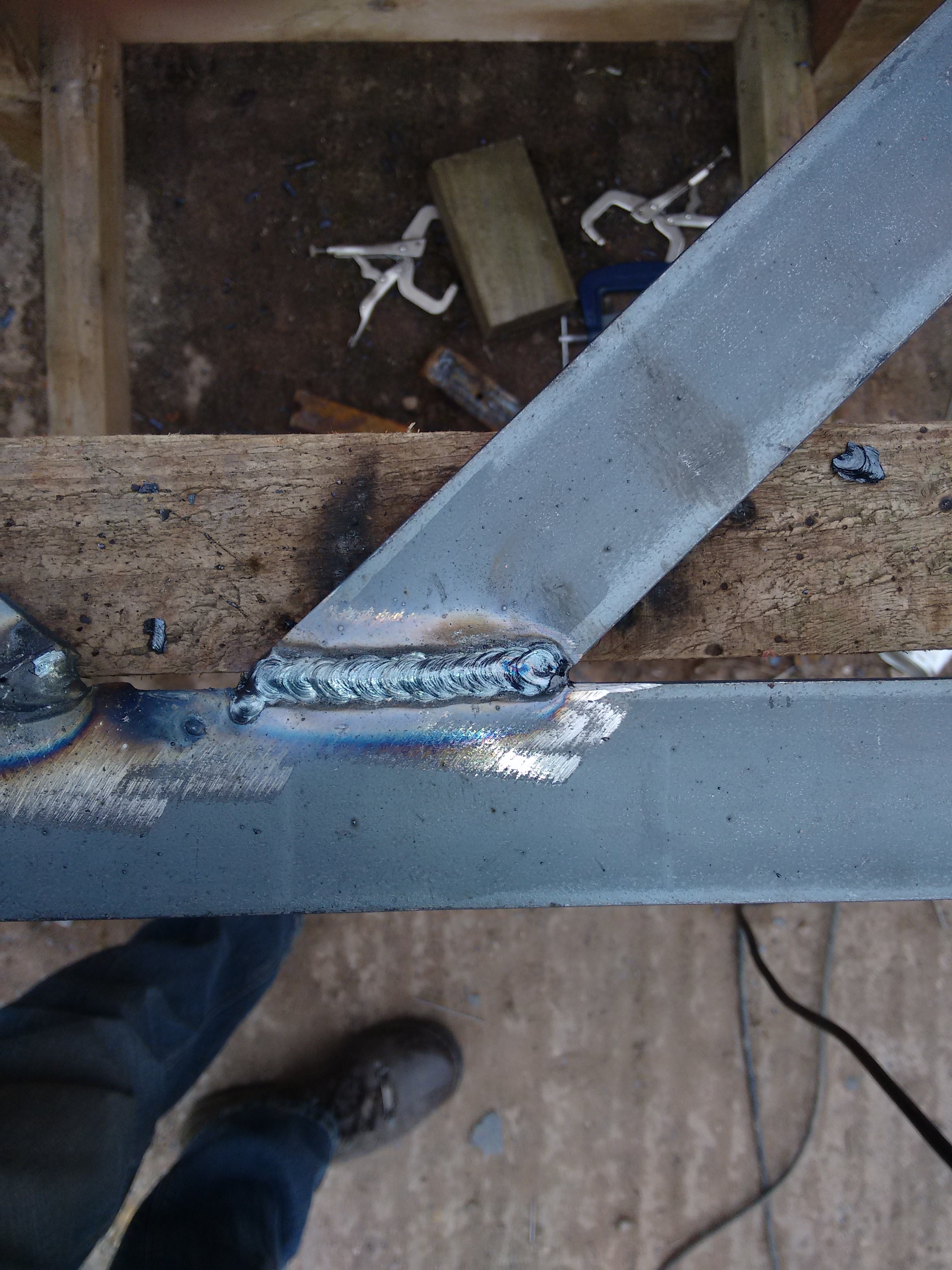 Also had a quick go with these new rods at welding vertically, nothing fancy, just trying to run a bead up or down. That's hard ! I quickly realised fully vertical is way too ambitious for me at the moment and tried it instead at 45 degrees, as the training book recommended. Played a little with the current and still struggled at going up. Going down at 45 degrees was much easier, possibly because in that direction, it is easier to see where the weld pool is going. I can see I will need a lot more vertical practice, or if not resign myself to welding in just 3 positions - on the flat, perfectly level and horizontal :).