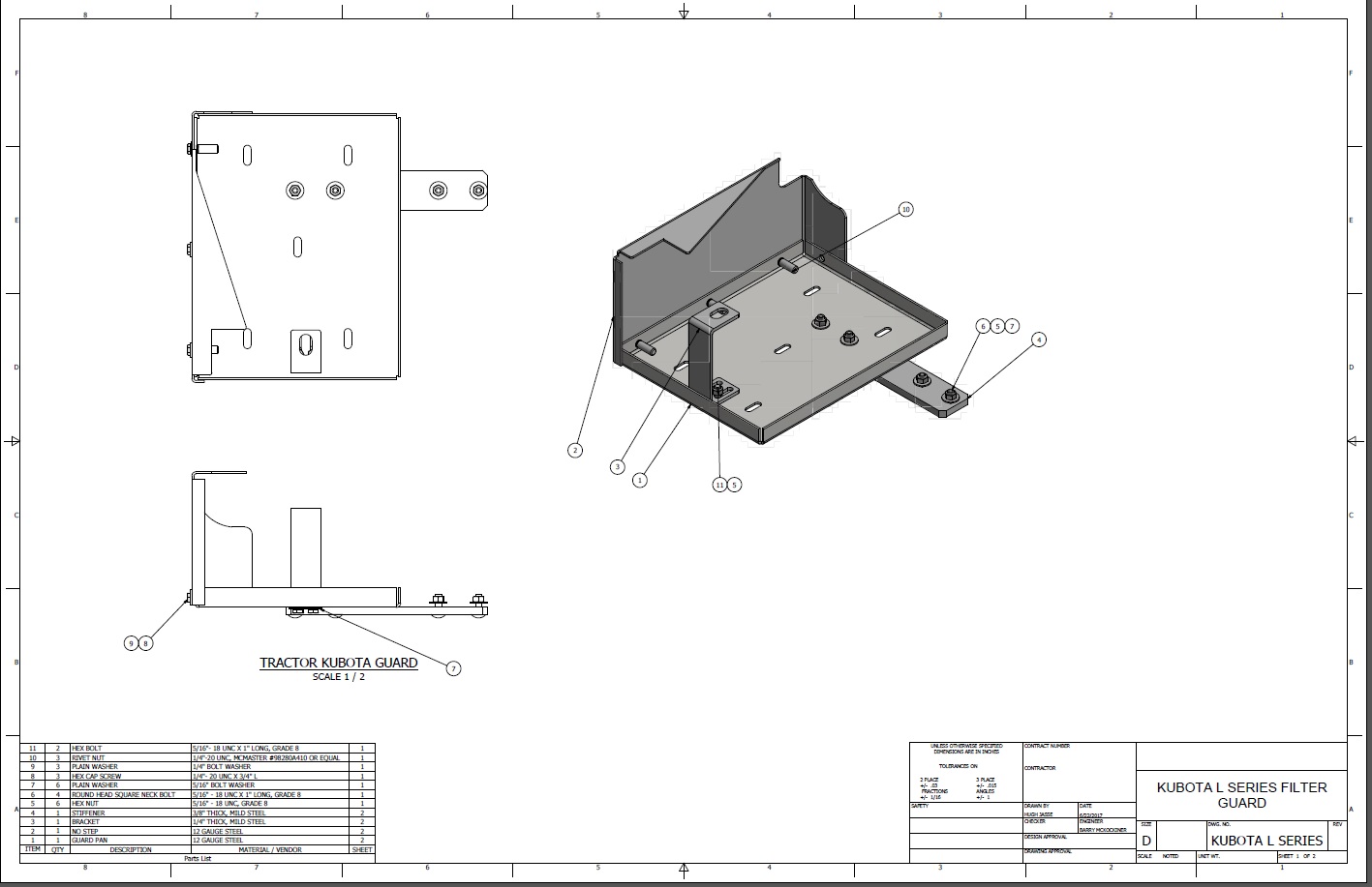 Took about 2 hrs to fit pieces on tractor, mark the two drill holes, drill holes and mount shield.