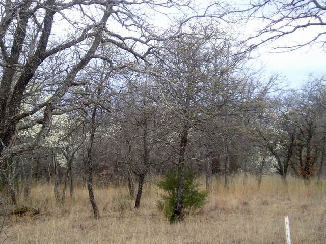 EDIT: I found some pictures of my "mystery" plum trees from a prior year. Notice how big each tree is and how solitary they grow.