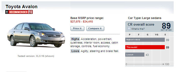 I just bought a car for my sales manger. I looked at Honda Accord, it came very highly recommended by a lot of people. I looked at Toyota Camry, also very popular. Also on the list were the VW, Chrysler, Dodge and Chevy.