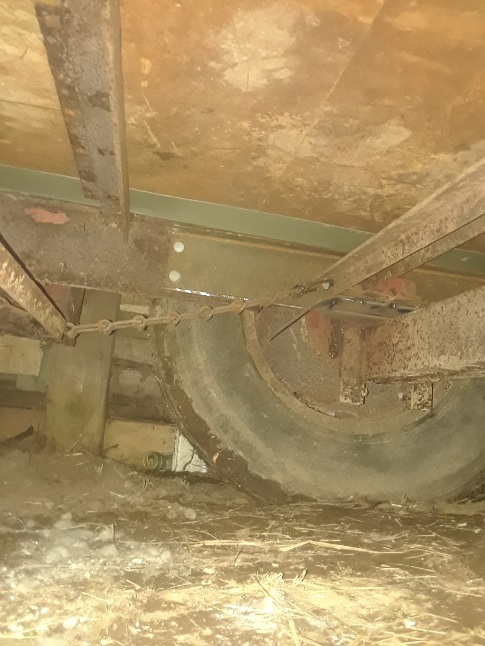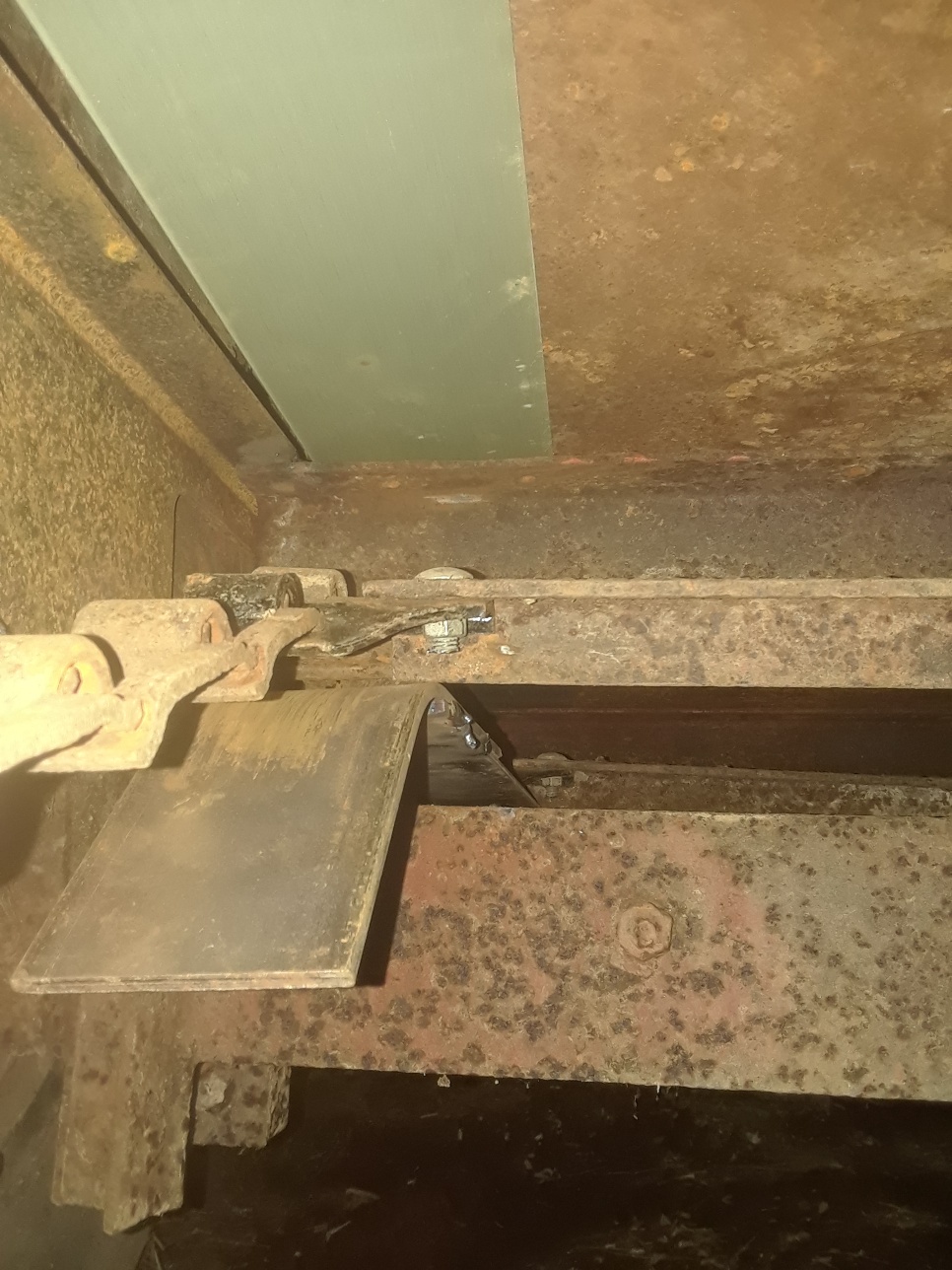 What I did was since the main frame on the sides were a C channel and the top of the channel rotted off I found some new C channel and I inserted it inside the old channel since the bottom and sides metals were good . Then since my new C channel wasn't the same wide as the original I welded some 3/16 x 4 as a slide for the apron chain to slide on. Then I bent some aluminum flashing at a 90 deg angle . Attached to wooden side and extended out past the new 3/16 metal apron slide . I then cut an oil tank and flattened somewhat . Dropped it in and bent the front edge down with a sledge hammer so the cross bars would clear. Needed a couple slide ramps built as the apron chain has some slack. Everything has to clear the axle cross frame.