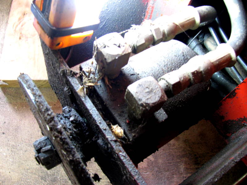 Have the wheels and wheel motors all cleaned up and no sign of leaky hose's or that anything was loose .. A few before and after shots. What a mess I see the tires were loaded.. Drove it around tonight it is running smooth no squeaks or knocks or noises of any kind..