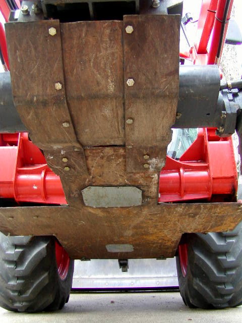 Heres a photo of the skid plate I made for a L4610 I will post 2 photos ,the side shot is covering the filter for the HST and HYD, this part got tricky used a peice of well casing I had laying around.