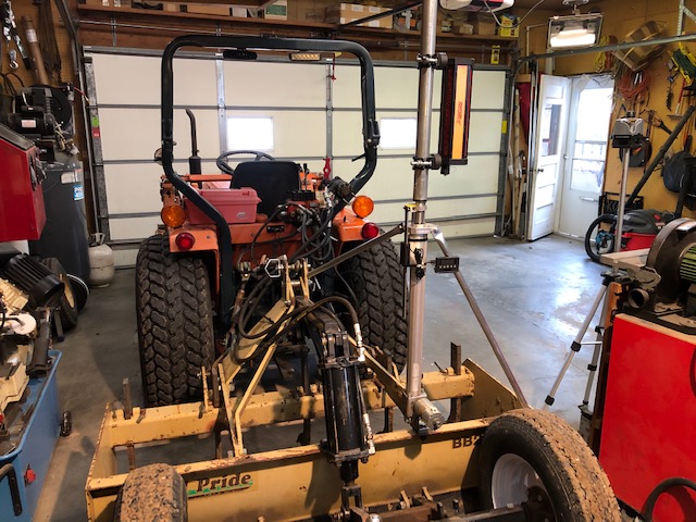 It's a matter of watching the LED arrow and making adjustments to the box blade on the go with the rear remote. I find that controlling the blade level with the rear mounted rockshaft wheels to work best. Can also do it with the toplink cylinder.