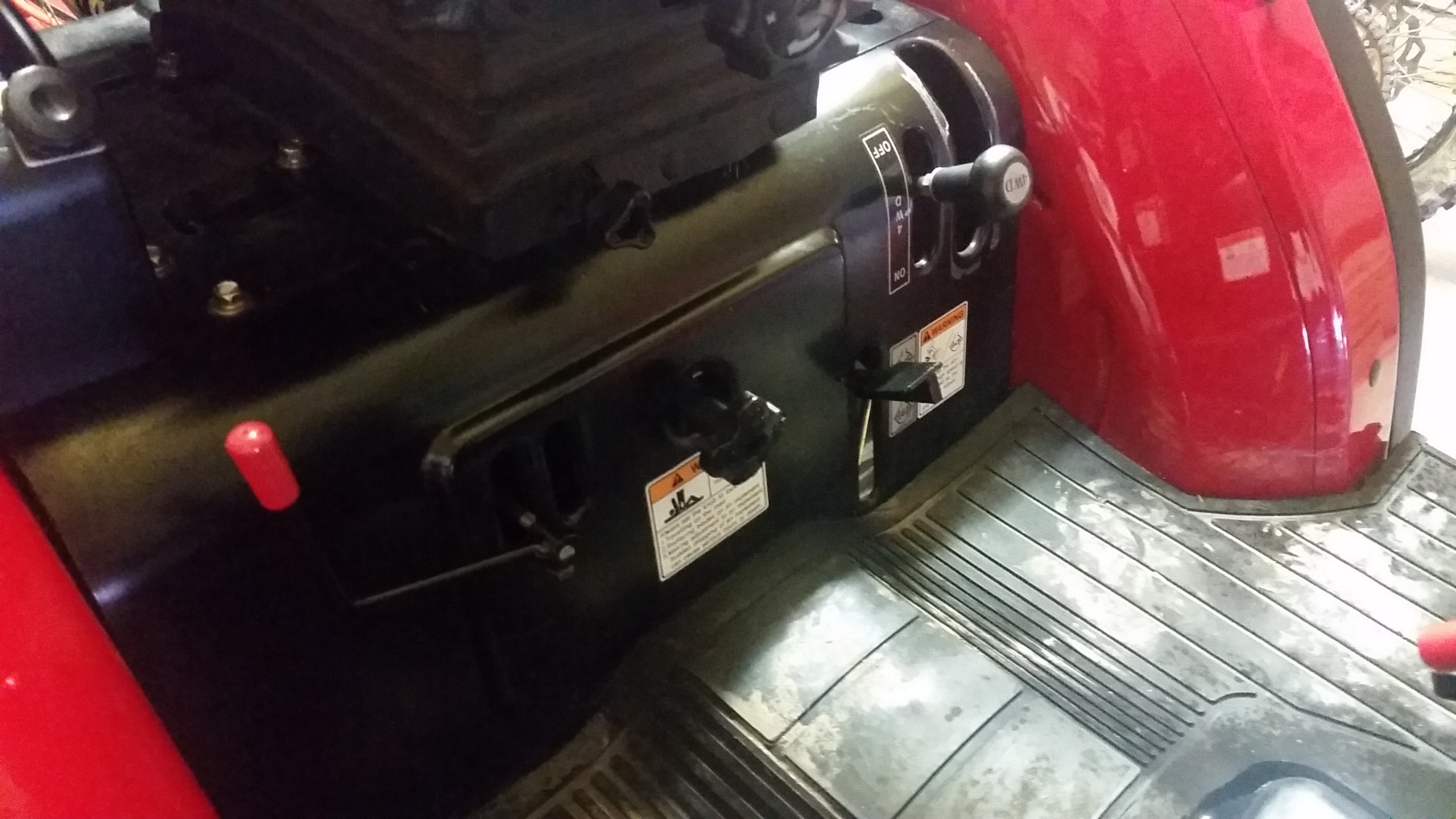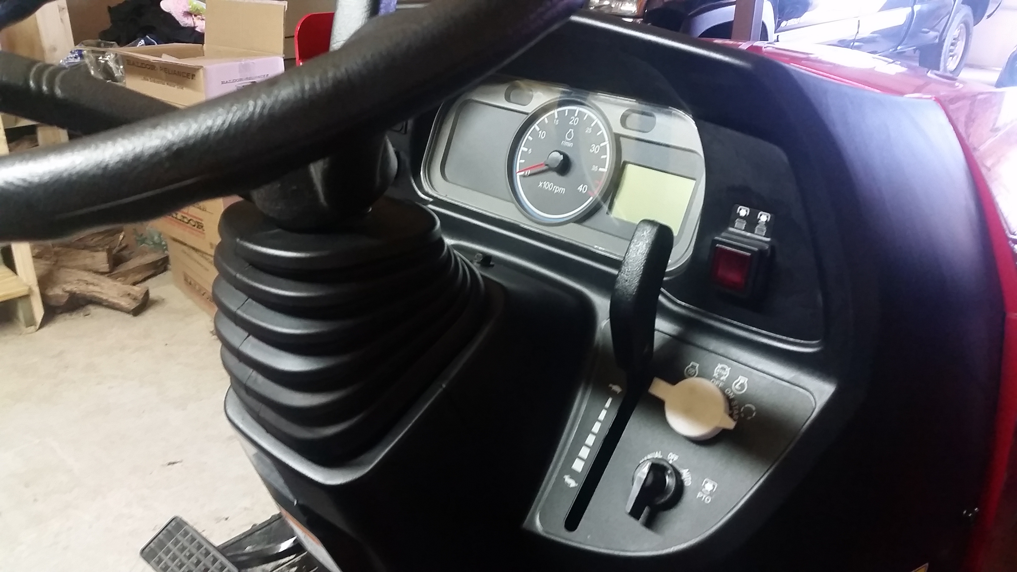Some other random stuff...it has electric over hydraulic PTO, and it doesn't work like the manual tells you. Long story short, there is a PTO manual/off/auto dash switch, a dash push button, and a hand lever on the left side of the seat. All three of these have to be engaged in order for the PTO to run, and when in Auto the implement must be lowered. It works fine, just don't expect it to work like the manual tells you. My tractor had a block off plate installed that prevented the hand lever from being engaged. Removed blocking plate, works fine now. My idiot dealer swore that he ran the PTO before he delivered it, which was clearly a lie because the block off plate was still installed. Meh, whatever, I figured it out on my own.