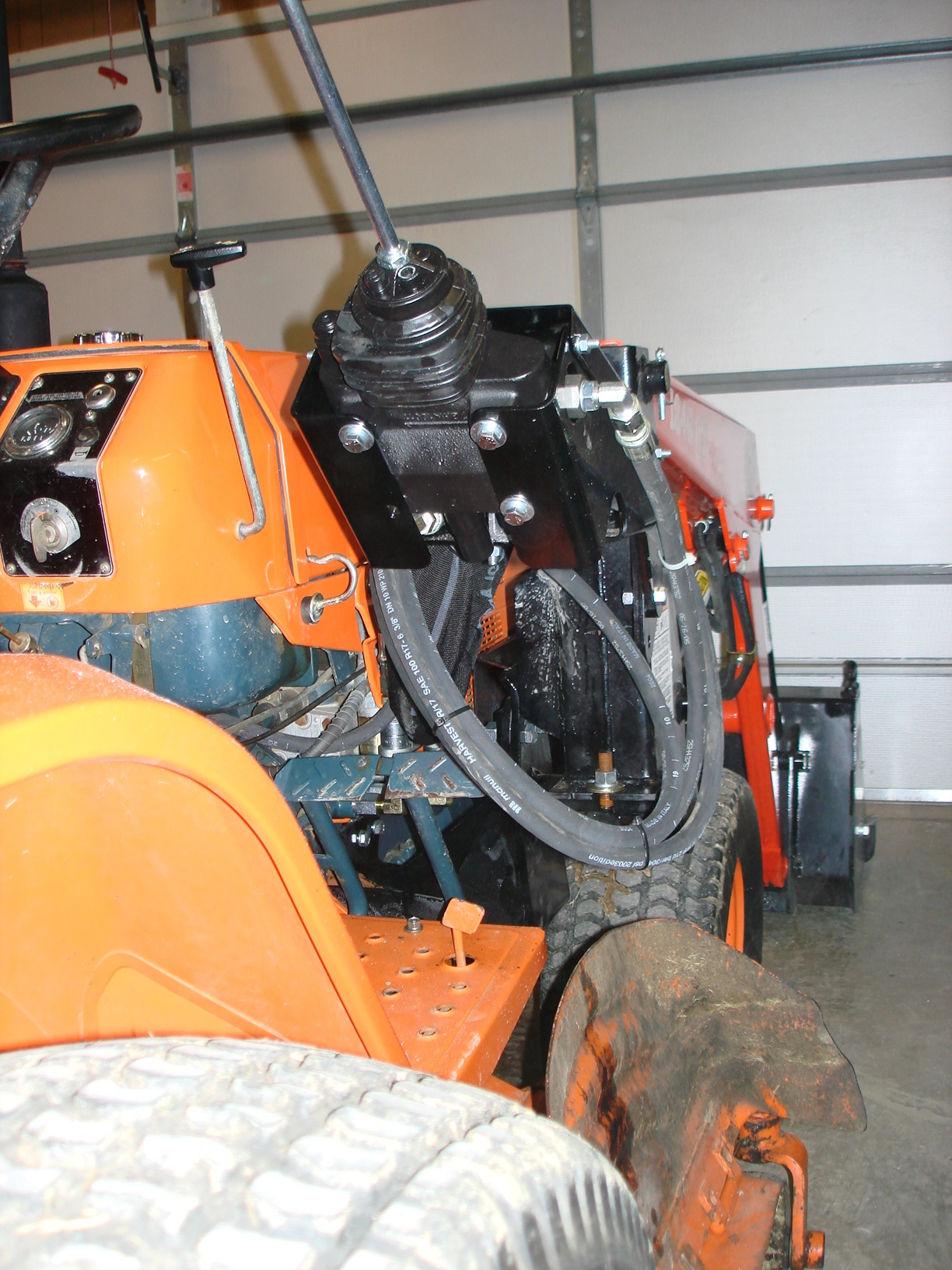 My Bush Hog FEL came in this week, and I opted to install it myself. I'm about 1/2 way done and am glad that I did it myself. So far I have one question. I have the line that goes from the loader valving to the fitting that goes in the fill hole for the tranny. The line is 90" long, which is really long in comparison to the size of the tractor. I read somewhere that it is usually routed under the operator's station. Does that mean that it goes toward the back of the tractor, around the seat and over to the valving, or under the tranny some how......??????????? It is on the left side of my gear shifter, and needs to attatch to my right hand control box.