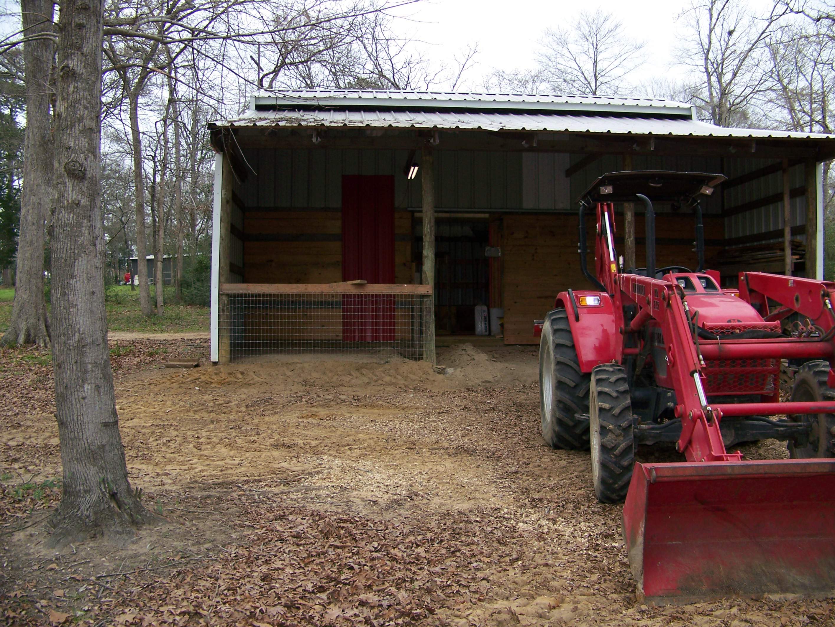 Before I could get the stall fenced to keep dogs and such out.............I kept the ducks in the cage in the barn where the Big RED Beast usually parks.