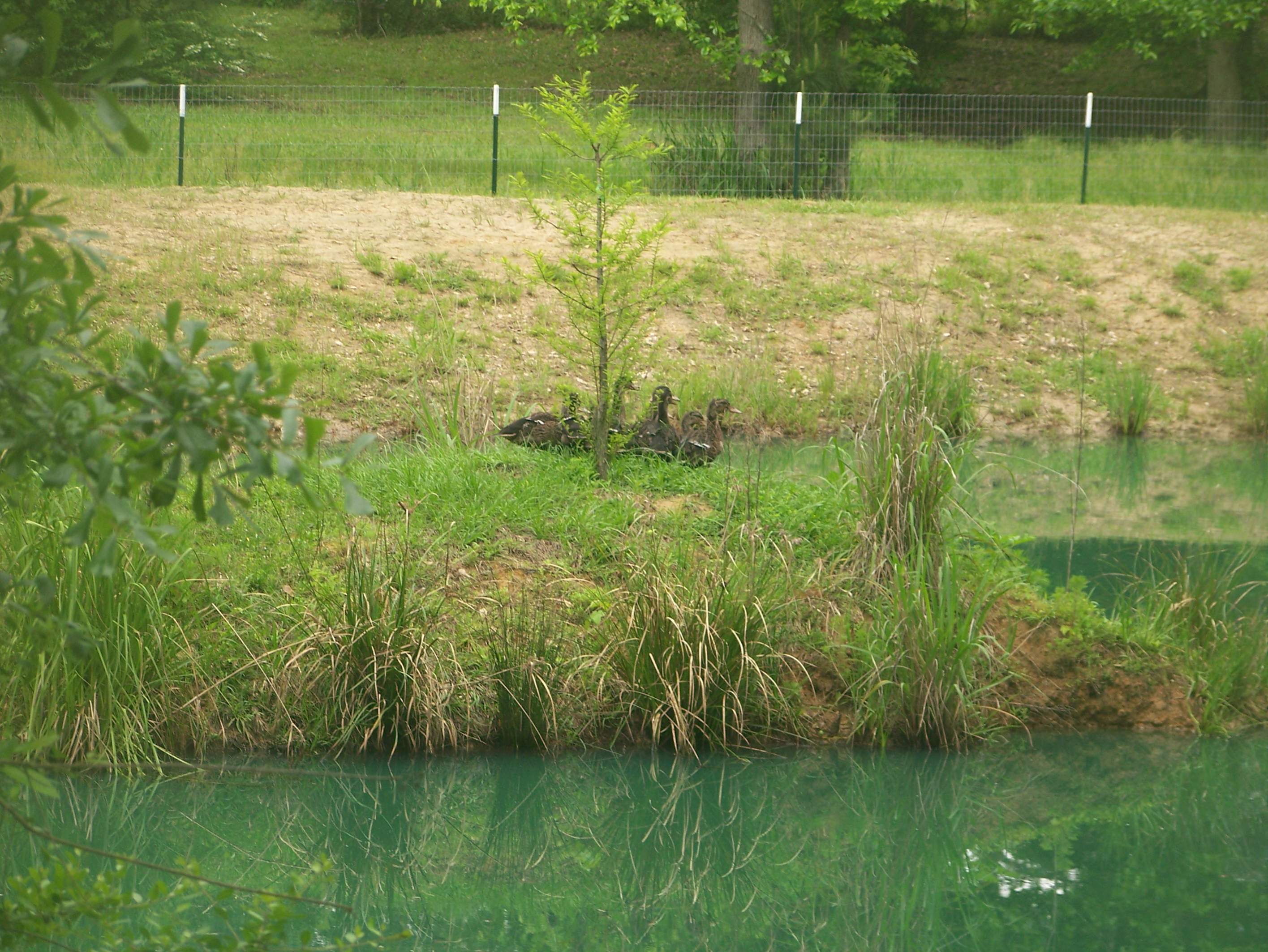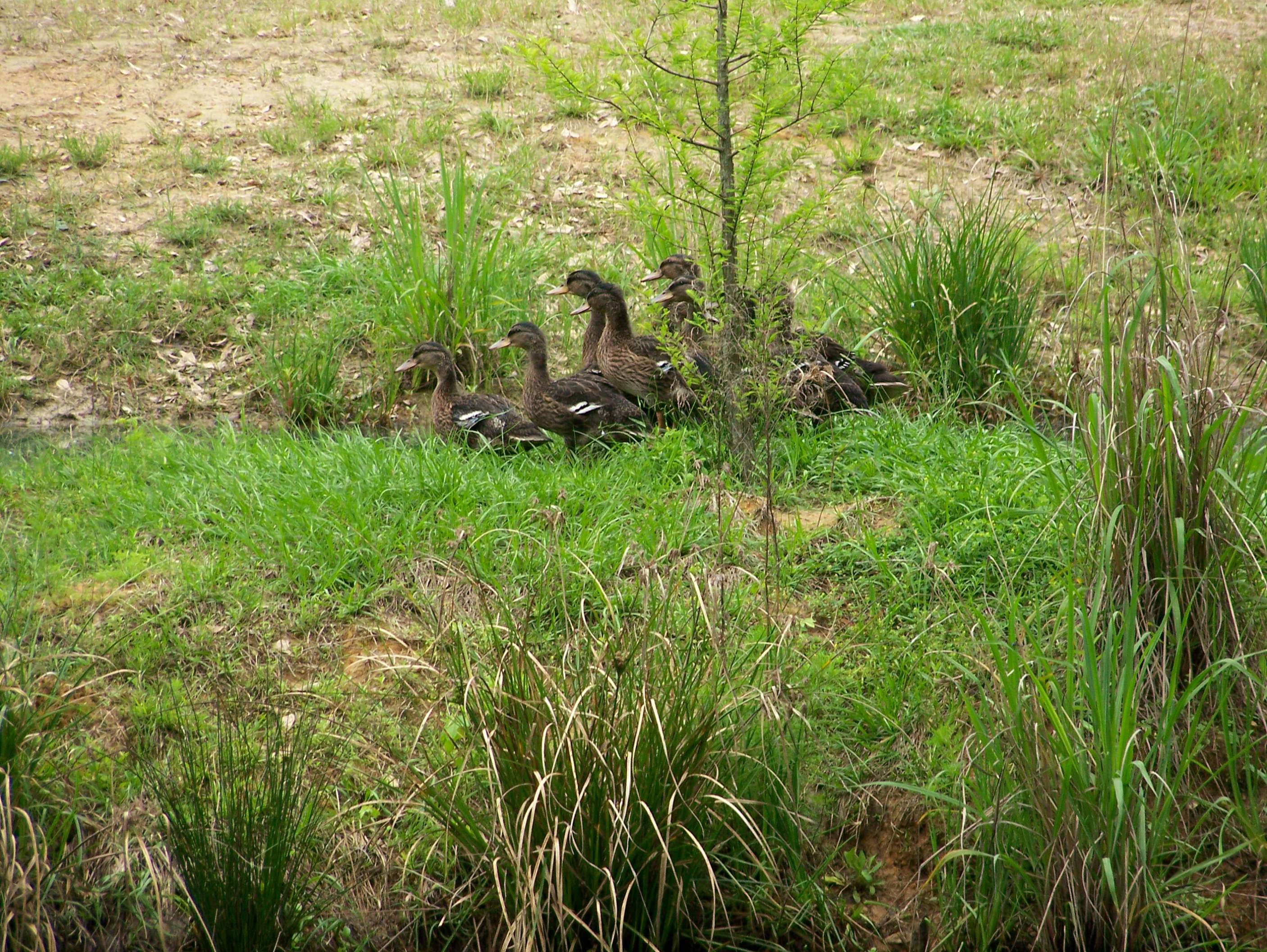 I sold 15 ducklings on Thursday, and released the other 10 out on the pond, today. I chased them into the water and they retreated to the island. The tree in front of the is a Cypress tree my neighbor gave me. These shots are telephoto photos.............4-18-15 Ten Ducklings on Island.jpg4-18-15 Ducklings on Island.jpg4-18-15 Class of 2015 on Island.jpg