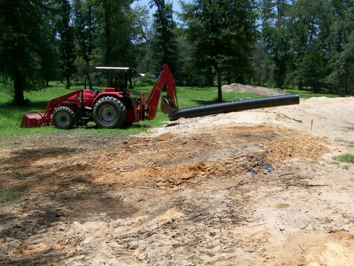 Sorry for the update delay. I was in Austin for my daughter's 27th birthday the weekend of the 21st. On the 29th I got the overflow culvert in and some pond bottom digging.