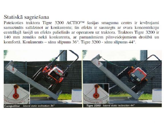 The newer 422s and 425s with Robin engines are rated for 20 degree slopes. My 425 is like the one Moss has with a Kohler CH25, and by putting larger displacement wheel motors on it, I can push those 25 degree limits even when the hydraulic oil is hot.