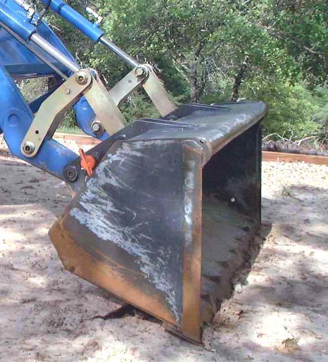 <font color="blue">There is a lot of slack in the bucket and cylinder pins. The Woods didn't have that much slack until 300-400 hours of the total 525 hours on it. The scoop bottom is too short or shallow making it remind me somewhat more of a deep dozer blade than a scoop. I find it impossible to skim soft dirt and get a nice heaping scoopful so far. Scoop capacity is very small for the 72" length.