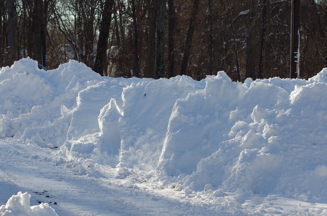 The snow I cleaned up today was about 20" on top of the first cleanup I did, and was REAL wet, so there was no plowing to it, mainly push about a foot at a time and then just lift the plow up and raise the stacks higher.