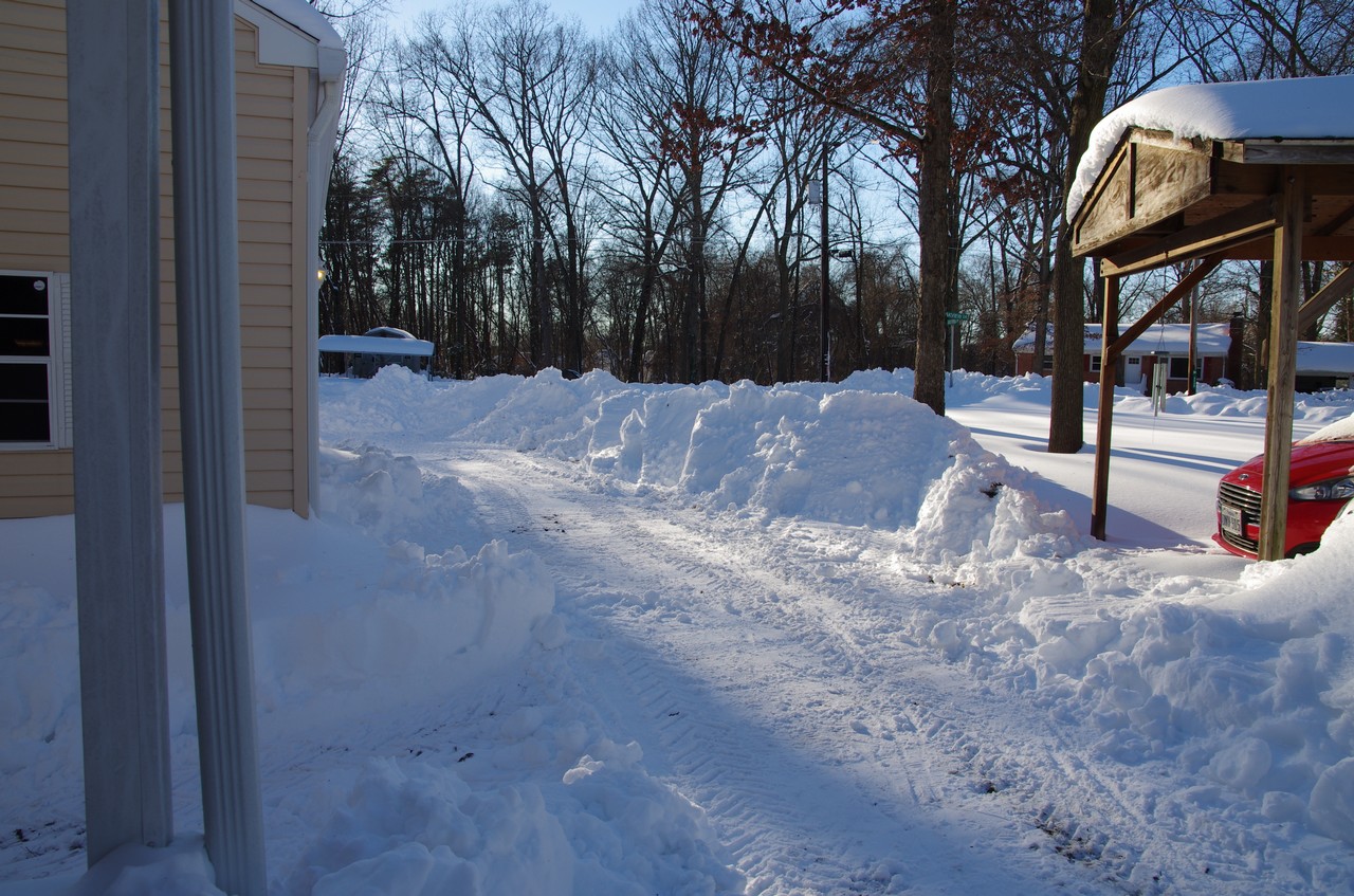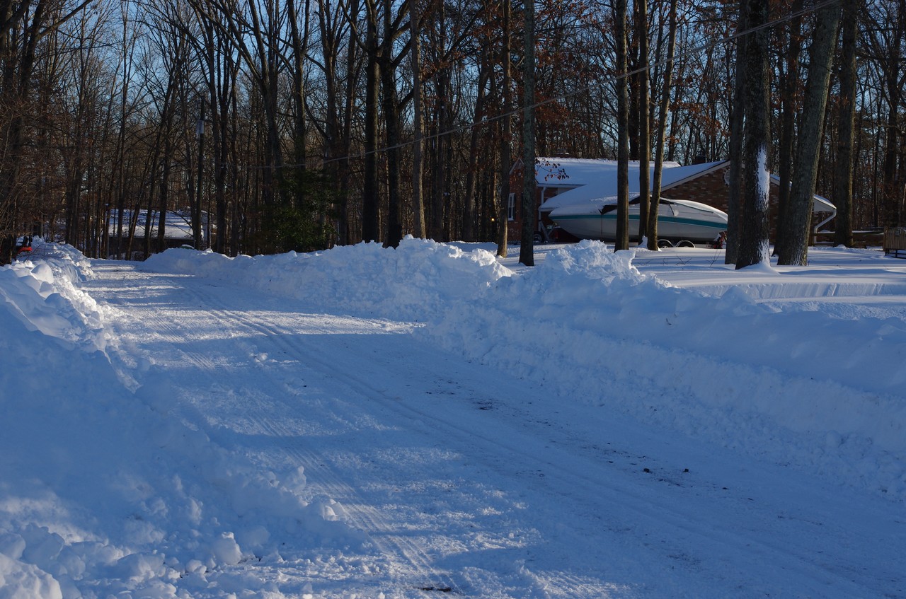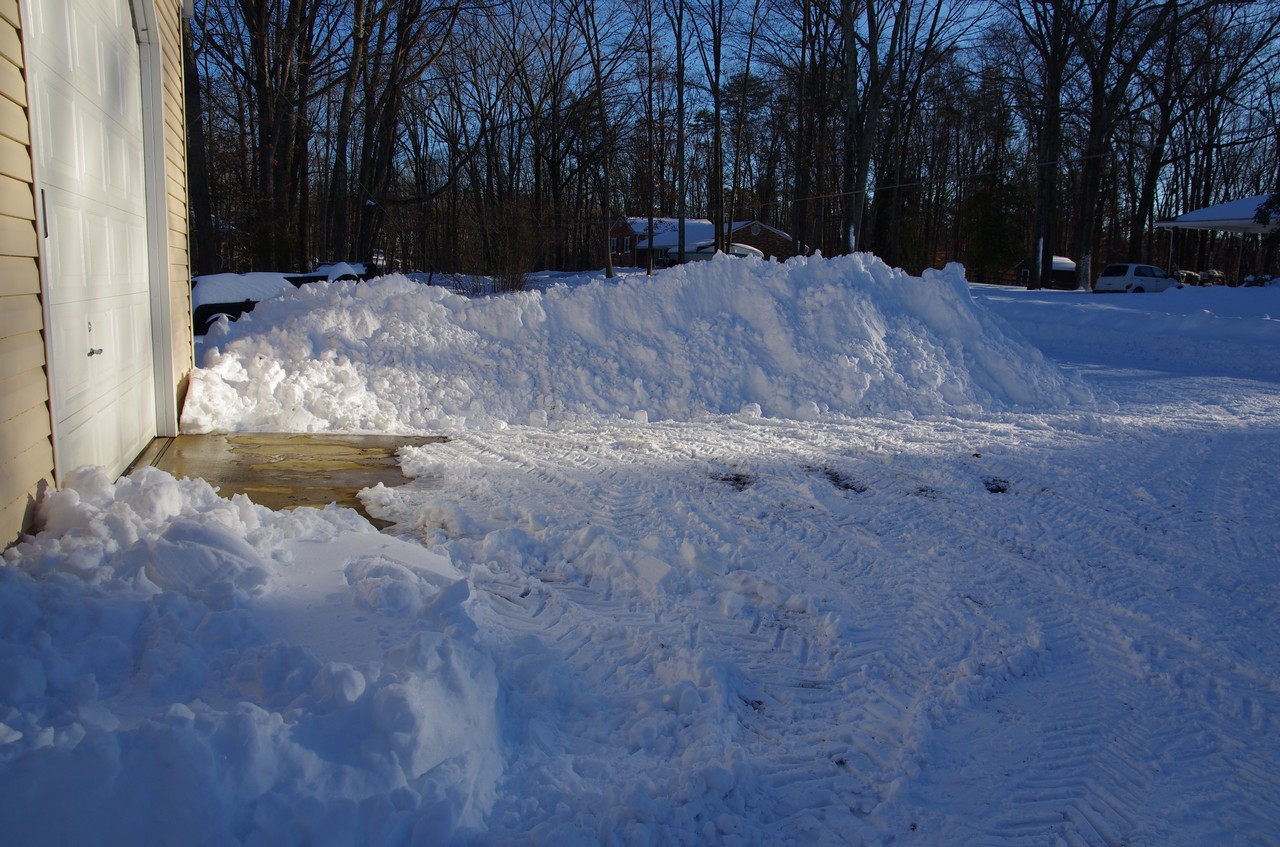 Northeastern Maryland, taken earlier today with around 18" on the ground. Snow is about wrapped up now with a total of around 30". Plowed the 500' driveway twice with the PT, tough going both times, just a bit of clean up to do in the morning...