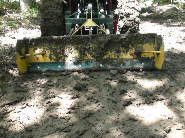 The only way I could fix my mushy/muddy driving surfaces was to grade with a box blade and rake, let it dry out and then cover with larger diameter (2" - 3") gravel or crushed concrete which fixed the muddy surfaces seen in a previous picture I posted. I prefer the crushed concrete as it is less expensive. Most folks will recommend creating a road with a crown in the center and drainage (ditches) off the sides. At my place the best I could hope for was a fairly smooth driving surface a bit higher than the sides in most areas as any grading just brings up more large rocks that creates more grading problems to deal with.