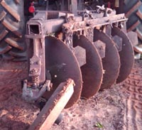 The one in Ken's photo with separate attachment points for each disc is what I know as a disc plow, just like Ken said. The ones with a single axle through several disc are what I call a disc tiller. The photo Egon posted is a good example of the disc tiller. The ones I've used were branded J.D. and Athens. I preferred the Athens possibly because mine had less wear than the J.D. that I used, it also seemed heavier . The guy who bought my Athens wanted to use it to turn under straw behind a combine. The Athens came in both a rubber tired and steel wheeled models. Wrestling with the weighted rear wheel to install a tire was a bear, so, if I ever get another one l'd like to try one with all steel wheels.