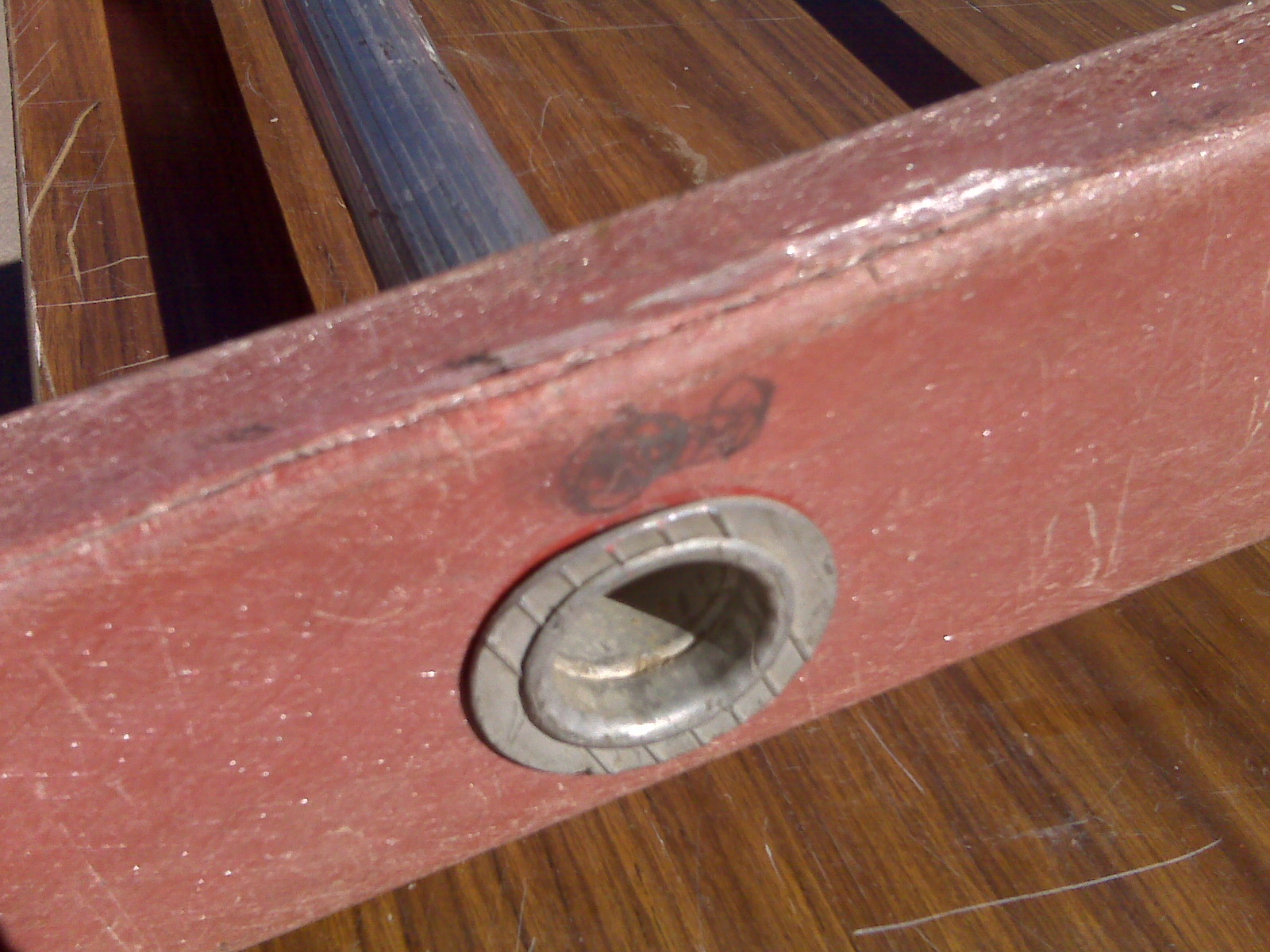 My brother borrowed it last month, and the side rail about two thirds of the way off was hit with something, so it is slightly cracked. One pic shows the damage. I use this ladder ONLY for gutter cleaning, and at no time is my 175 pounds at the top of the ladder, only about 2/3rds of the way up. Even then, the crack barely spreads.