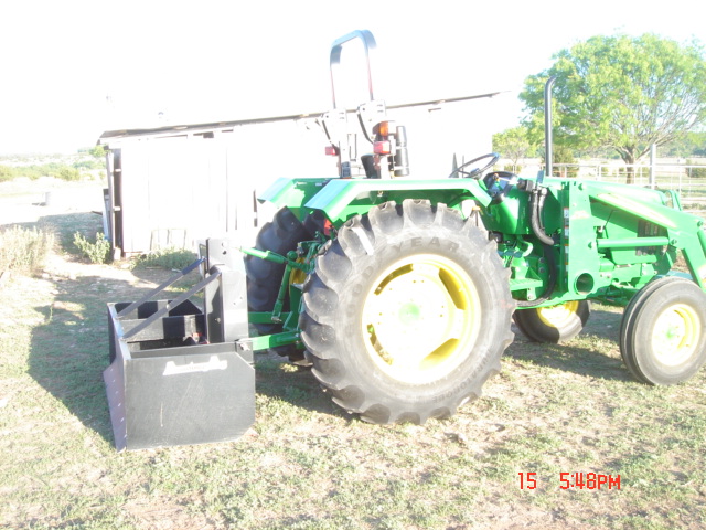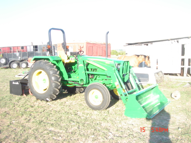 Just delivered on Friday:D 5103 2WD, 512 FEL with 73in. bucket, Mohawk 6ft rotory mower, 6ft. HD box blade. I've played with all the implements and have done some serious work this last weekend. So far I'm very impressed with the machine. I've found that the new shuttle shift transmission is every bit as easy to use with the FEL than an HST. Power seems very satisfactory. I also got the 14.9x28 tires for added traction. I'll post pictures as soon as I get some.