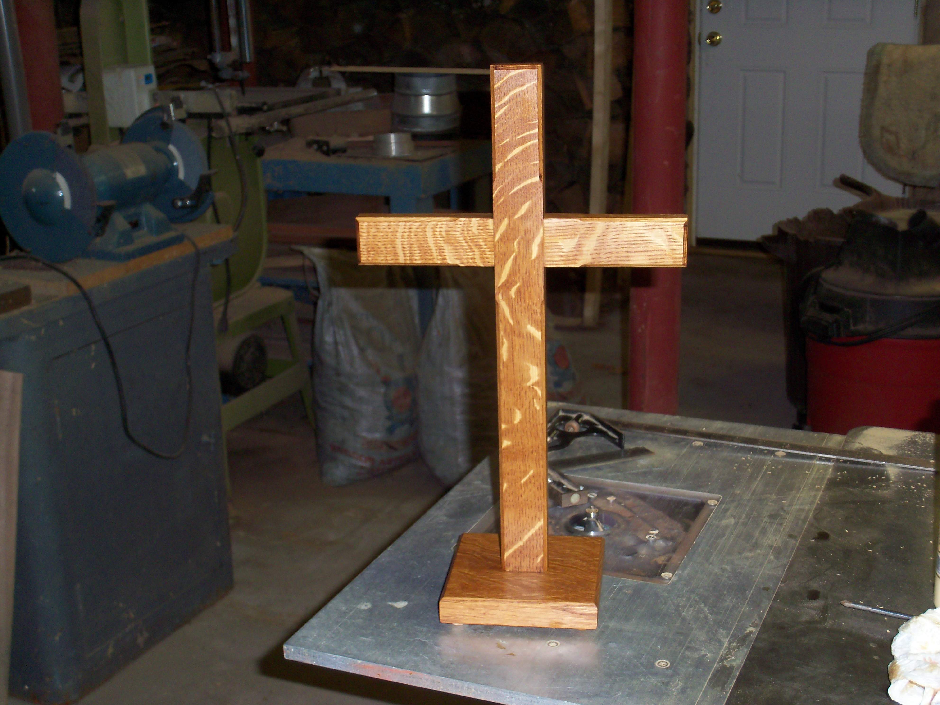 The wood turned out to be quarter sawn white oak with some very nice ray pattern it it. Lat week I was looking at the boards that I had, and it dawned on me to make a cross out of some of it and give it back to the church as a gift...