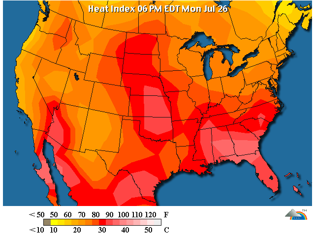 I am sure the heat index was at least 5 to 10 degrees hotter in most cases......