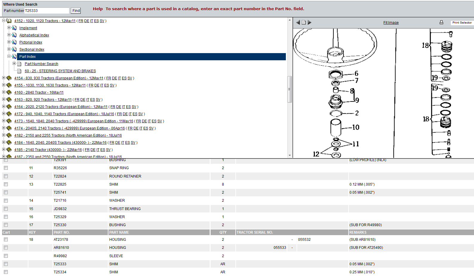You're very welcome. Yes I utilize parts catalog. Having being formally employed by a JD dealer for over 21 yrs and served as a parts person for part of that time I understand JD's parts system better than the average person.