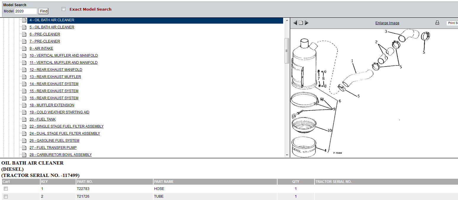 Air intake pipe(T23611) appears in both 2020 & 2030 parts catalog.