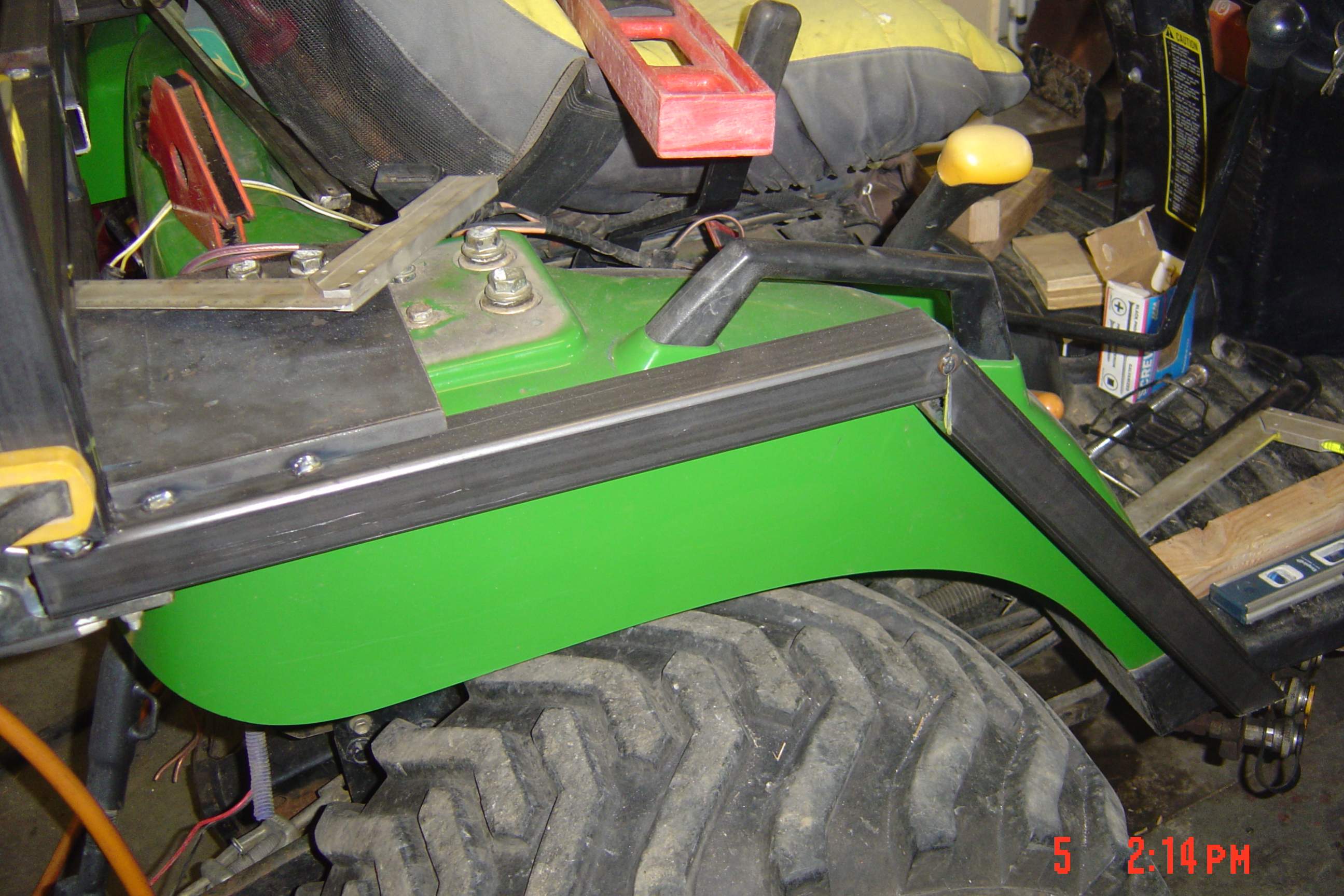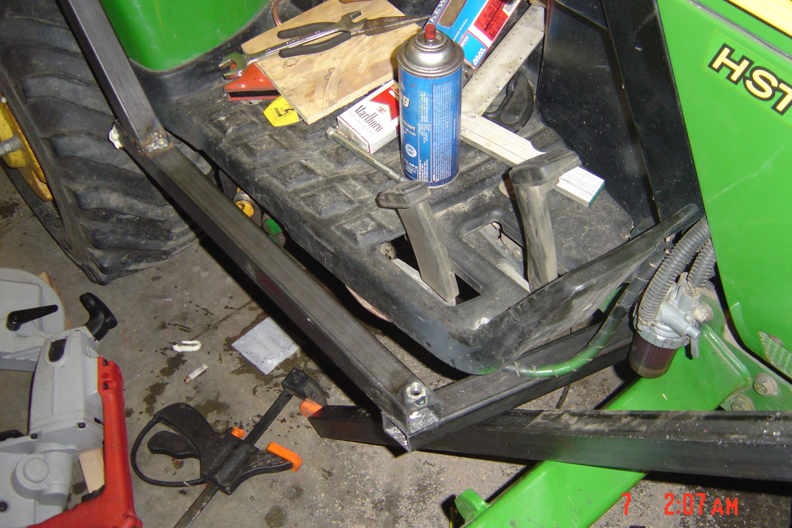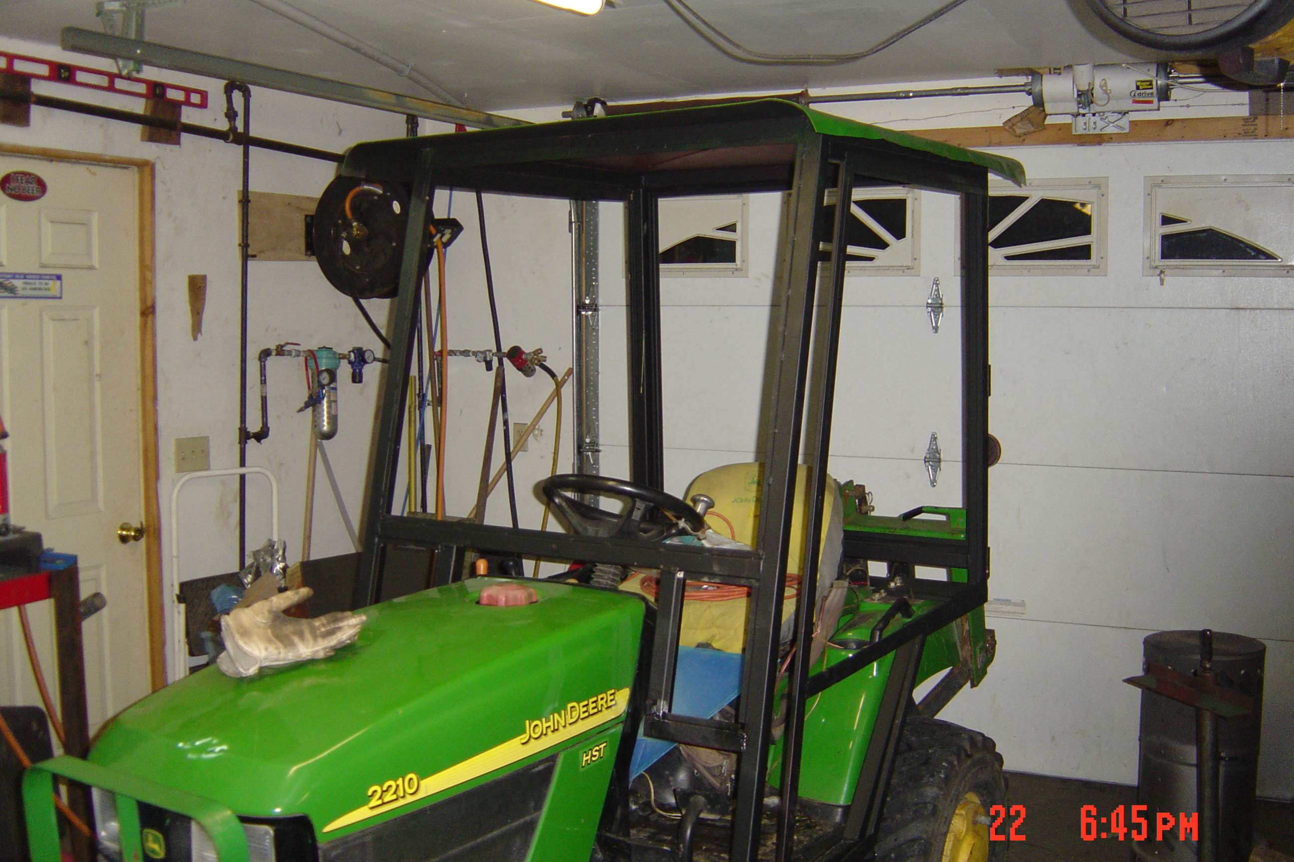 After pricing cabs I quickly decided the only way I would ever be able to afford the luxury of snow-removal without fighting the elements was by fab'n my own. So about a month ago I got serious and started scouring this site and google for other cab builds when I stumbled upon Huskerplowboy's post re: the cab he built for his slightly larger (and newer!) 2320. Anyone interested in one of the best (if not the best!) homebuilt cabs needs to look no farther than here http://www.tractorbynet.com/forums/...de-cab-deere-2320-cut.html?highlight=2320+cab (I'm not very handy when it comes to posting and such as I can't for the life of me figure out how to make that link "clickable"!?) Anyway, I read, re-read, and visualized his build for a week or so and then took his advice and started buying material! Amazing how that sppeds the build along!