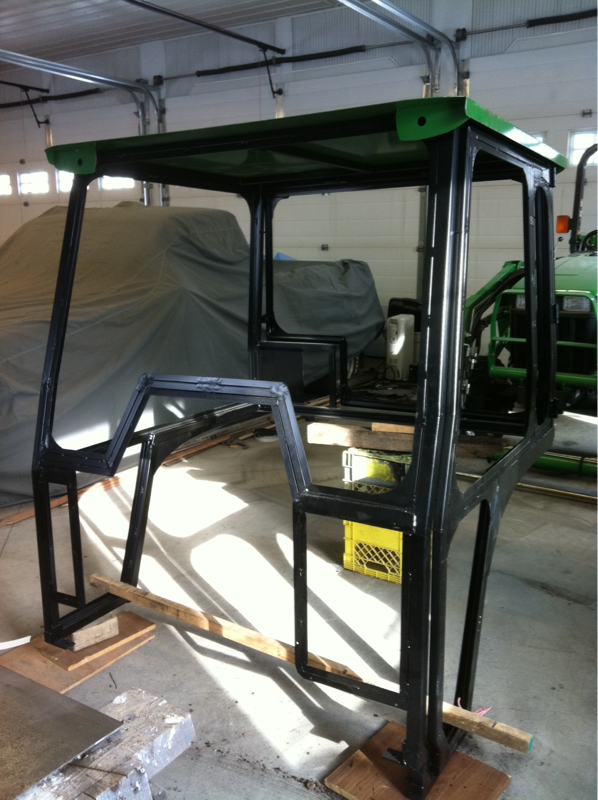 Pics of cab returned from powdercoater. Did a great job and think was a much better route than painting. I do wish now that I would have sanded cab down smooth as the semi gloss shows any imperfection. I was sick of working on it and just needed to see paint to get me motivated though. This is as far as I have gotten as I am away from home again. Hope in a couple weeks I can get some windows installed and track some type of vinyl rubber down to fill in gaps at fenders as I didnt want any metal touching plastic as this cab will be removable and dont want to scuff plastic. I also used 3/4 " rubber below seat to fill in any gaps for cold air and hopefully will sound deaden a bit