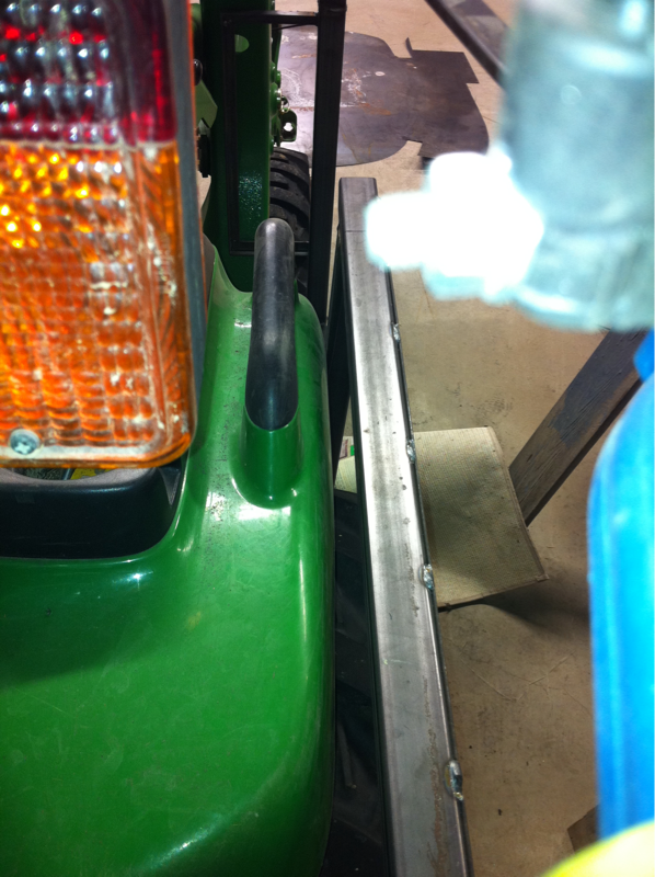 Outer frame coming together.Trying to get this square was difficult due to there being nothing on tractor flat to put a level on. Was hard to even tell if tractor was sitting level.